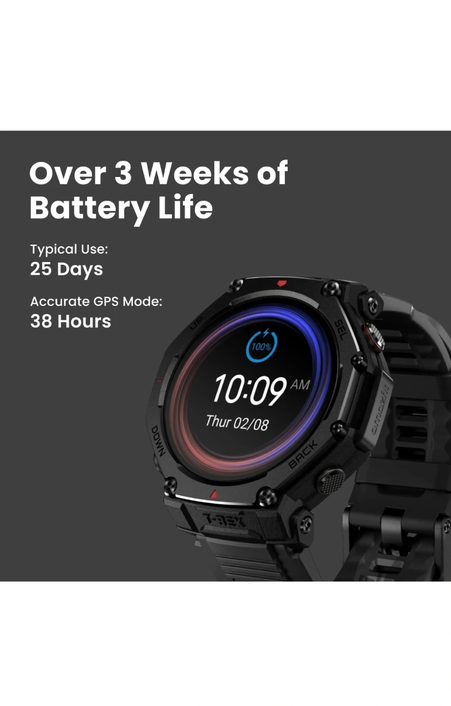 Up to 3 Weeks of Battery Life: Built to keep up with you, this watch delivers exceptional battery life - up to 25 days - so you can focus on the journey, not the charger. Whether on multi-day treks or remote missions, it stays powered when you need it.