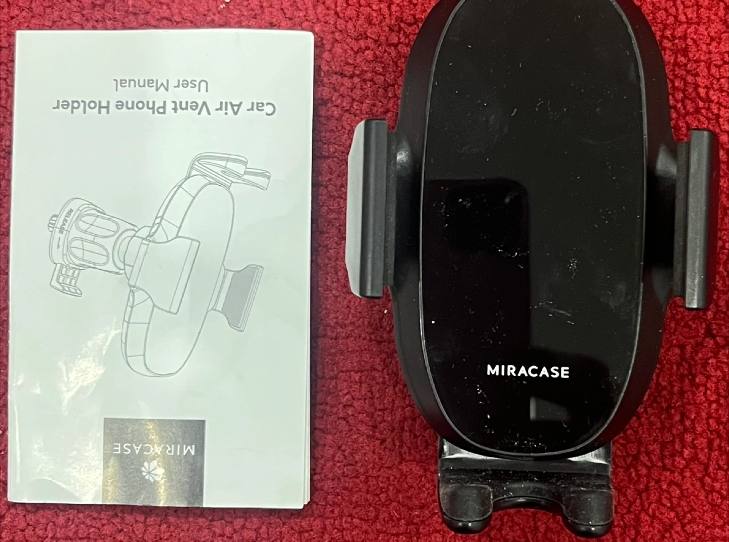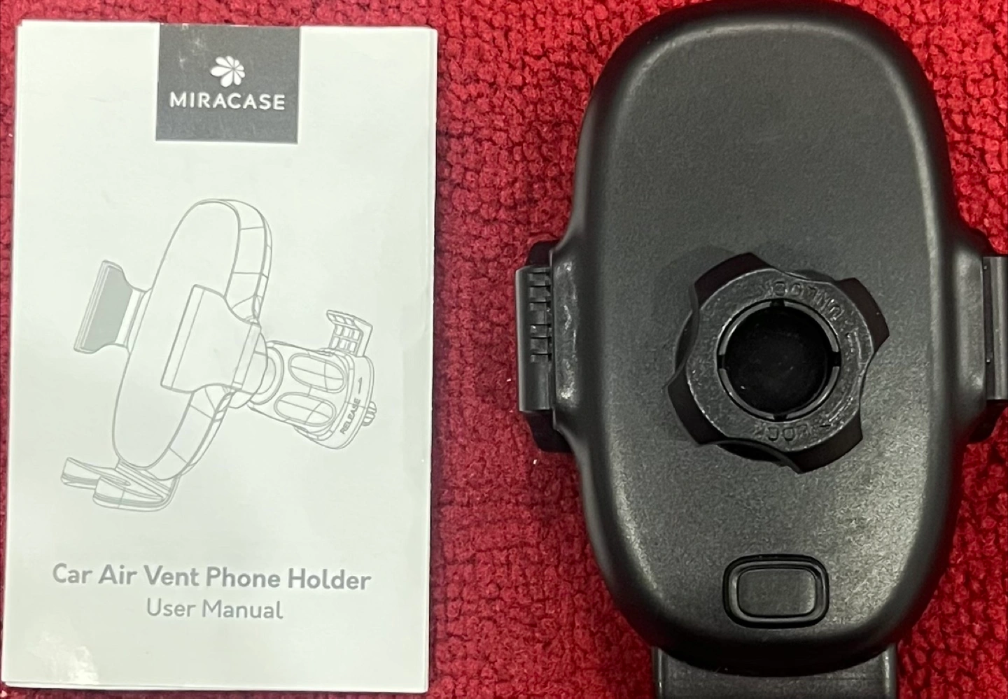 65Black car phone holder. Attaches to air vent. Includes user manual.