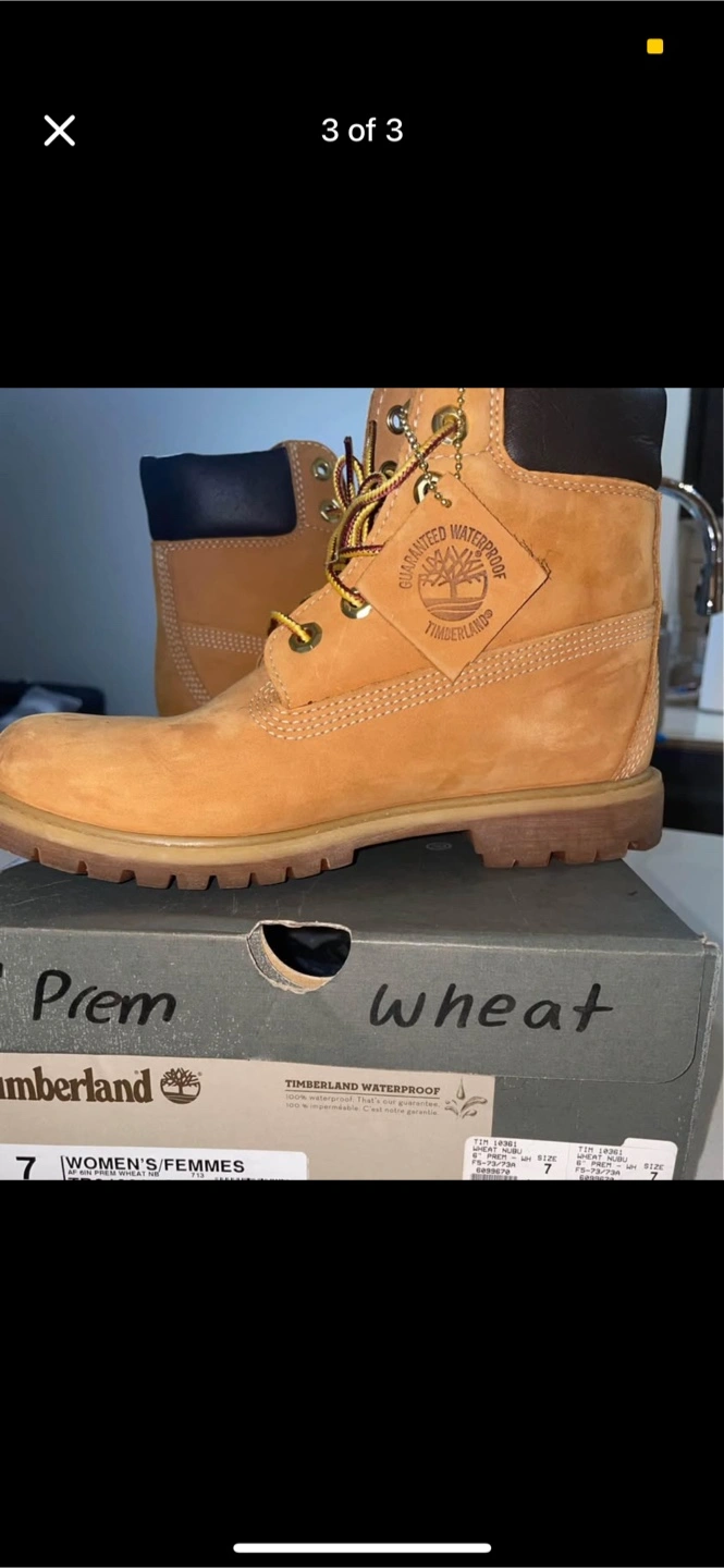 Women's size 7 Timberland 6-inch Premium waterproof boots. Wheat colour. Comes in original box.