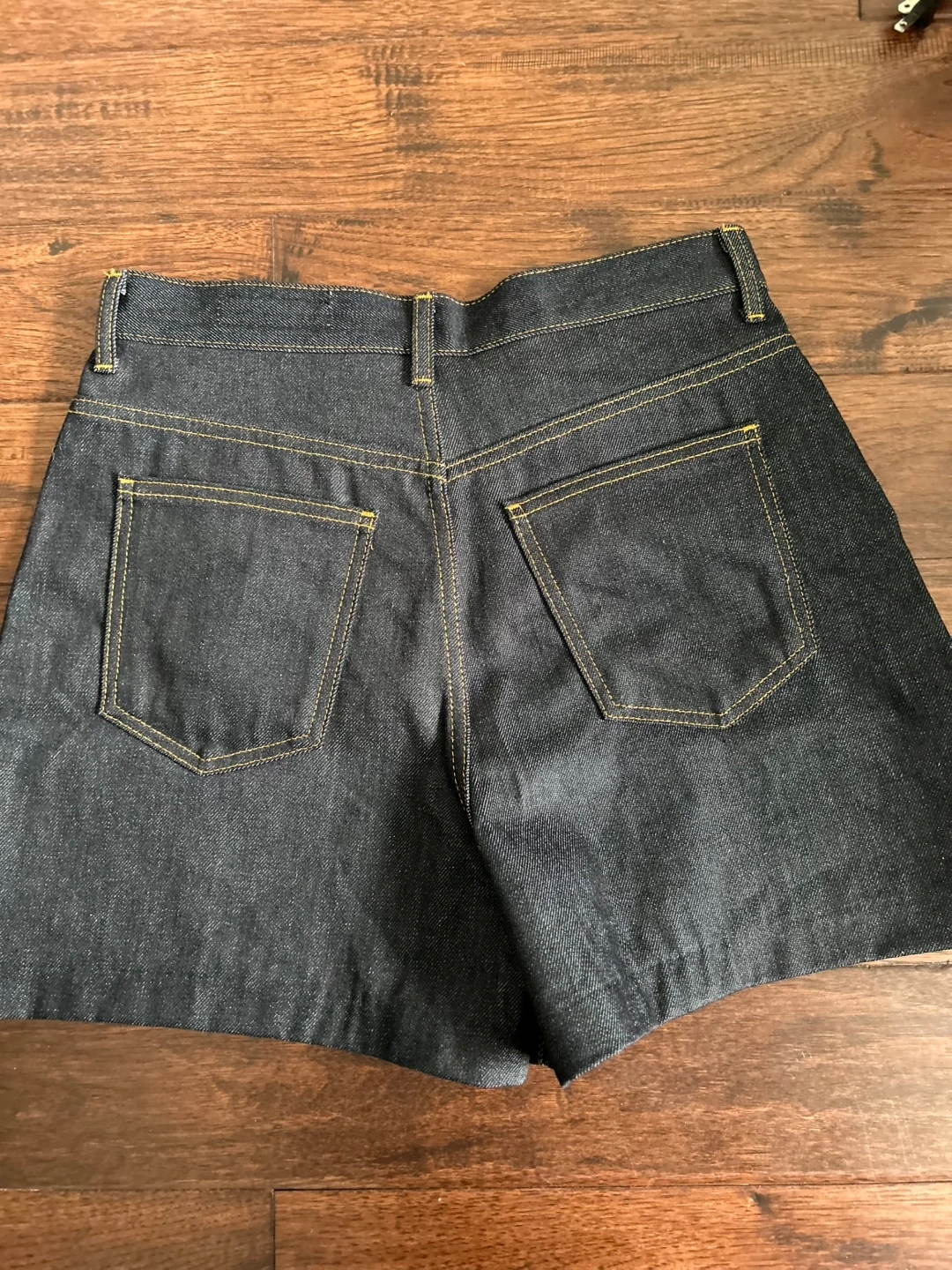 Women’s high-waisted denim shorts. Dark wash. Size 4. New with tags. Originally priced at $55.90 before tax.