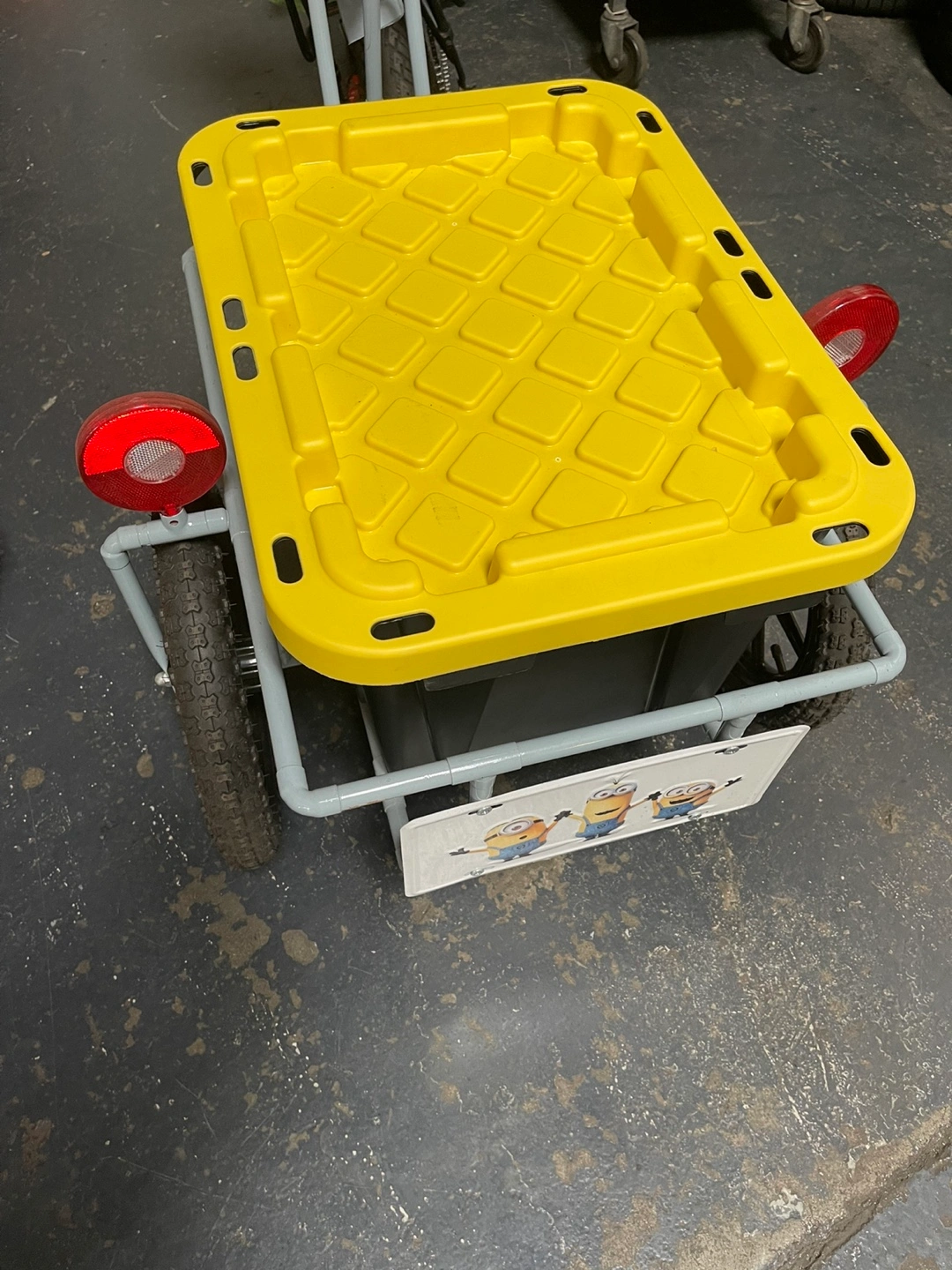 Dual motor, Folding electric bike. Includes helmet, and custom-made trailer. Good condition. Minor wear.