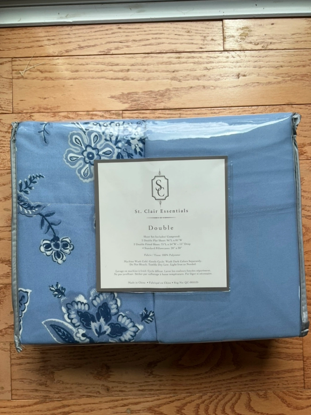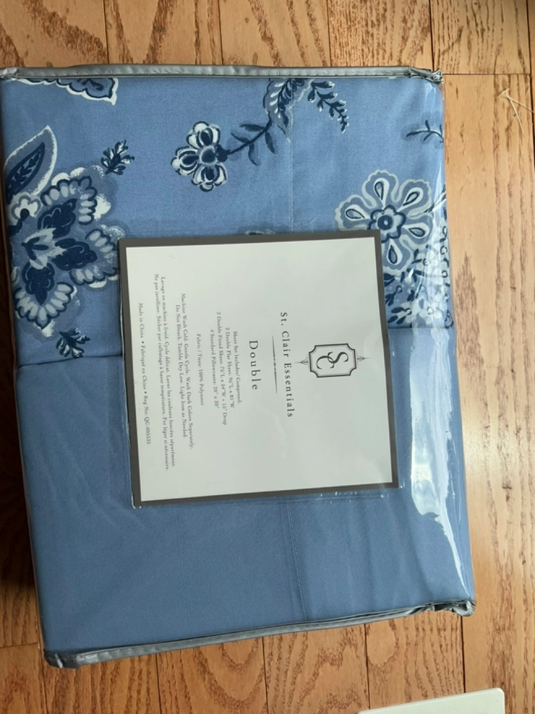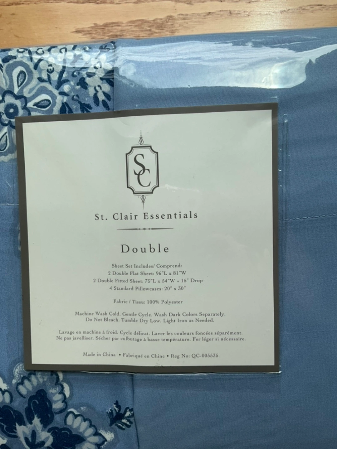 1 set of solid blue sheets and 1 set of paisley blue sheets. Each pattern has a fitted sheet, flat sheet and 2 pillowcases. Totalling 8 pieces of bedding. Mix and match on your beds. 100% polyester.