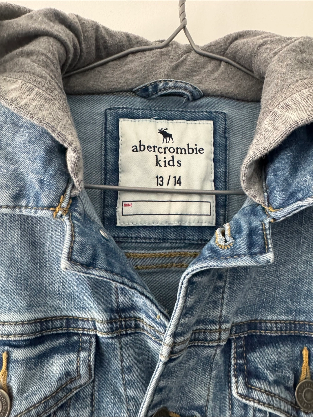 Buy & SellAbercrombie Kids Denim Jacket with Hoodie - Size 13/14Abercrombie Kids Denim Jacket with Hoodie - Size 13/14$15Light wash denim jacket. Grey marl hoodie. Long sleeves. Button closure. Size 13/14. Condition: 8/10ConditionLike newWHERE TO MEETHighparkView MapSELLERverifiedSophieHigh Park N1215 reviews0 chats·0 favorites·8 viewsSEND CHAT TO SELLERHi Sophie! I’m interested in your listing.Hi Sophie! I’m interested in your listing.Get the Karrot app to chatSign In to chat