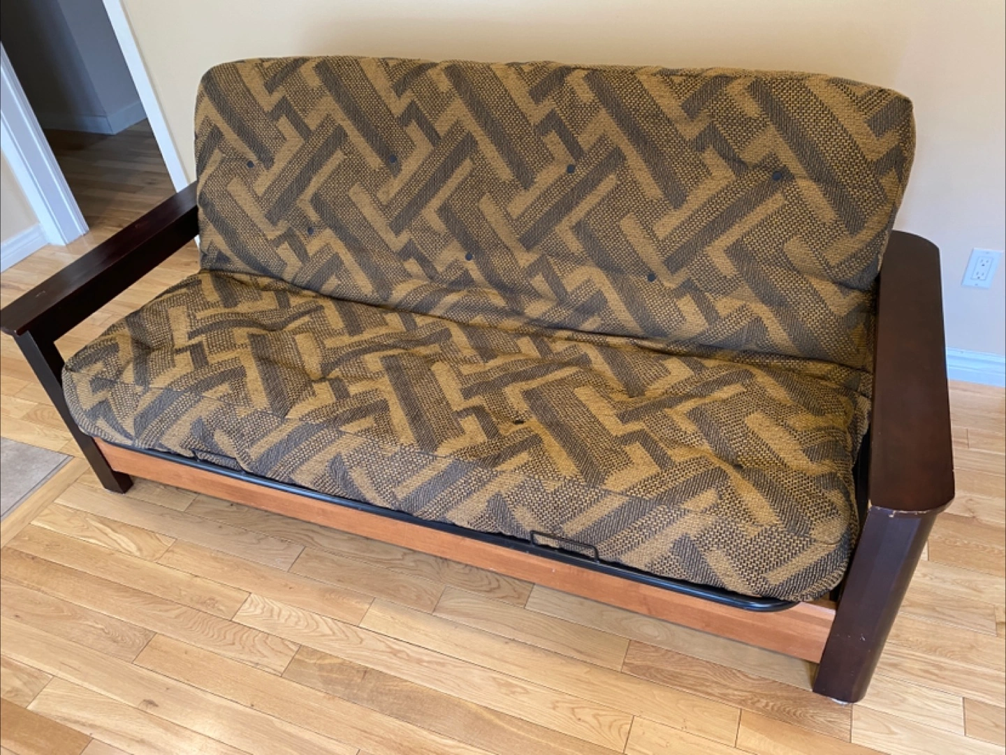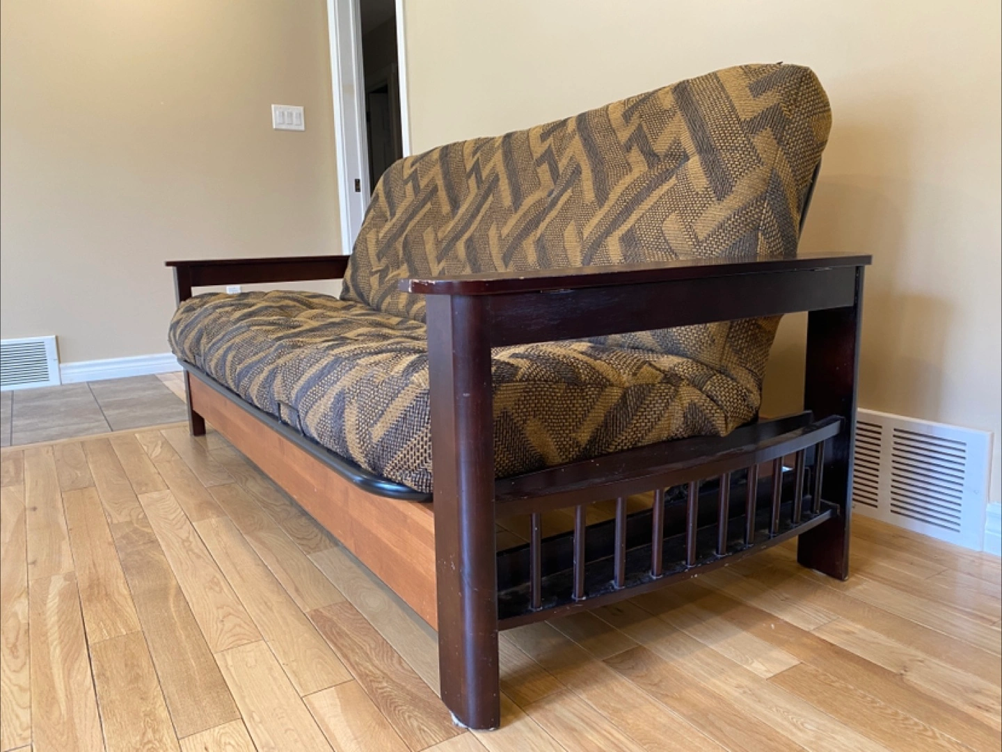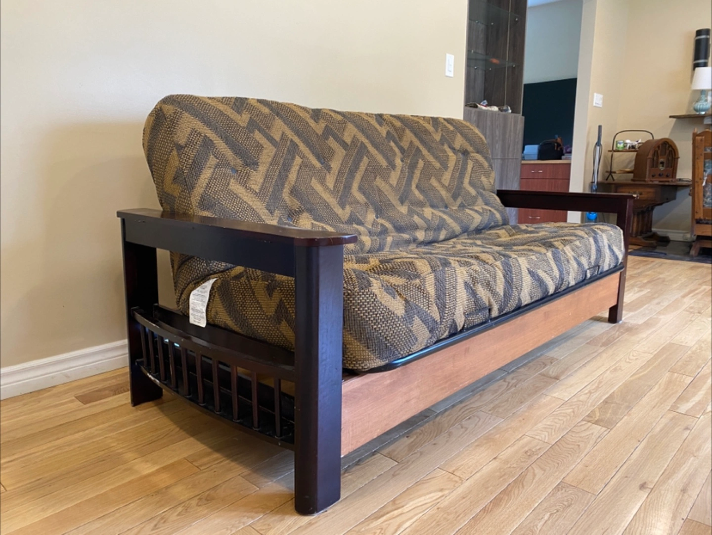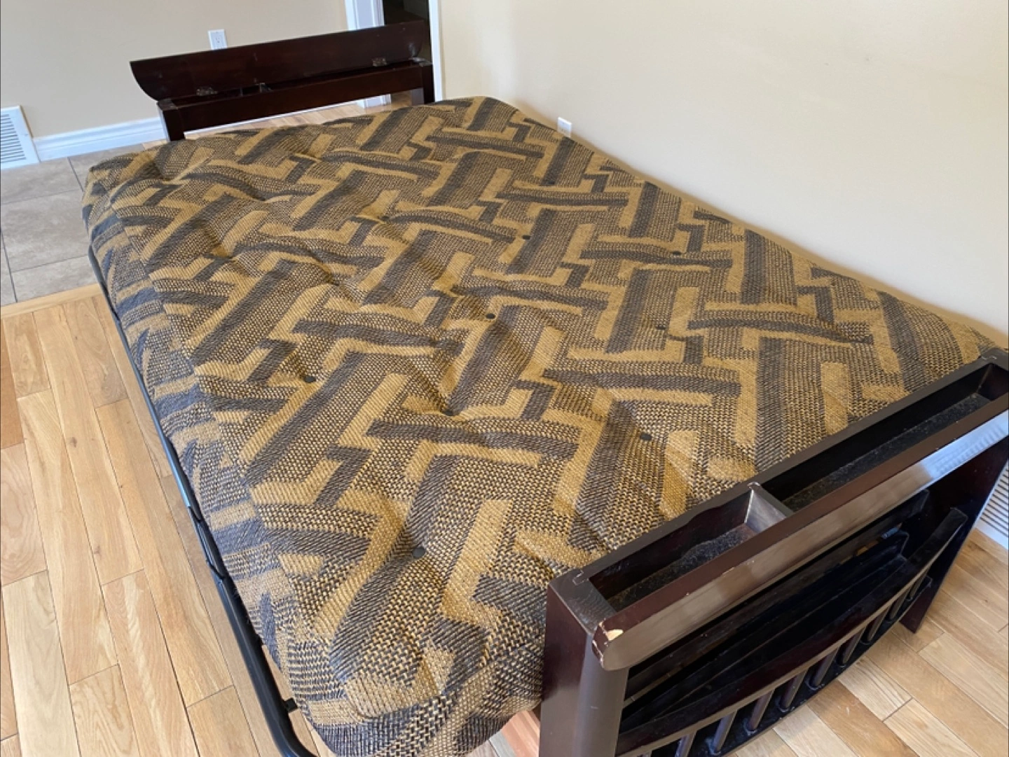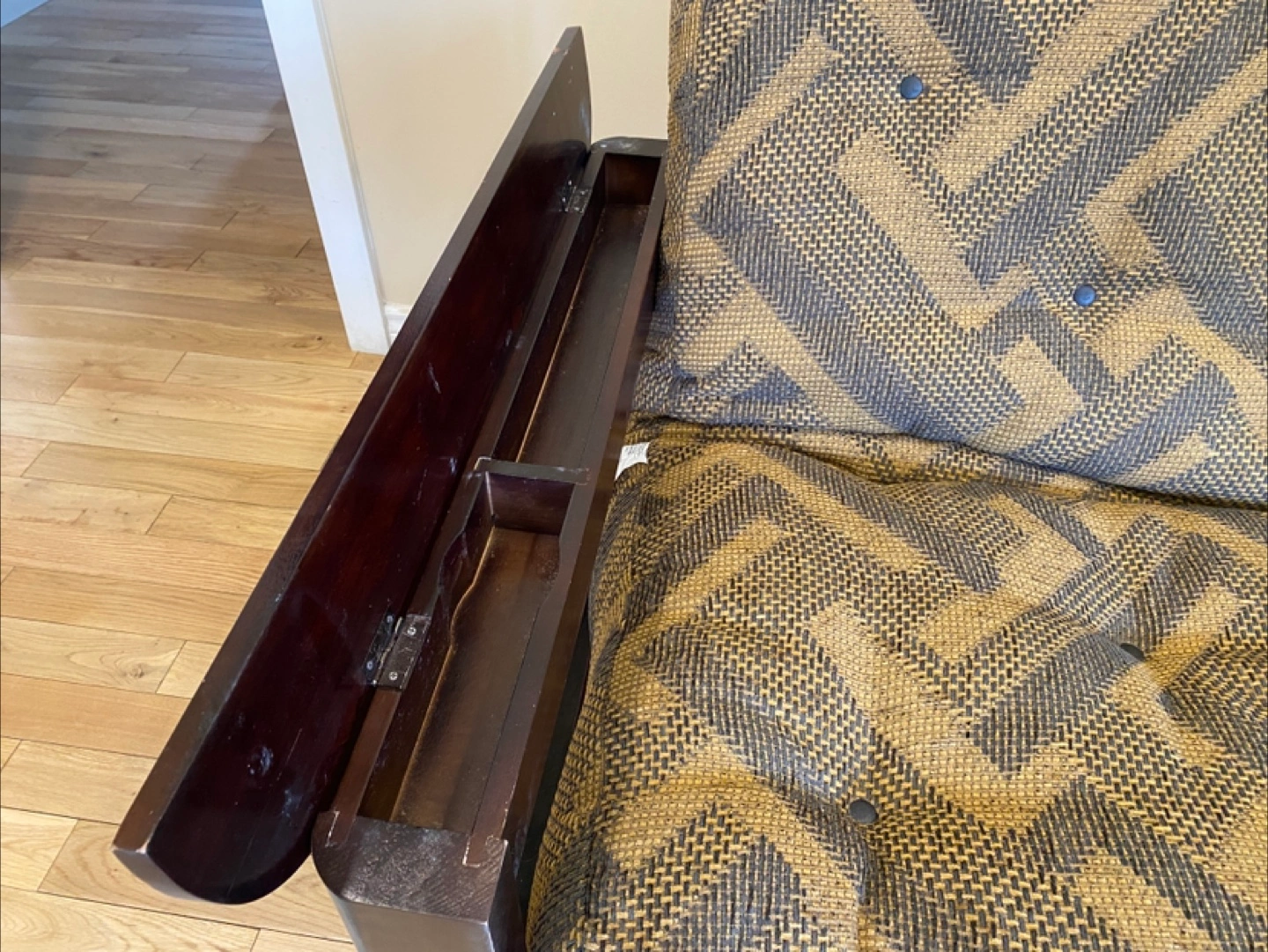 Beautiful Full Size Futon with Storage Hand Rest (CAN DELIVER)