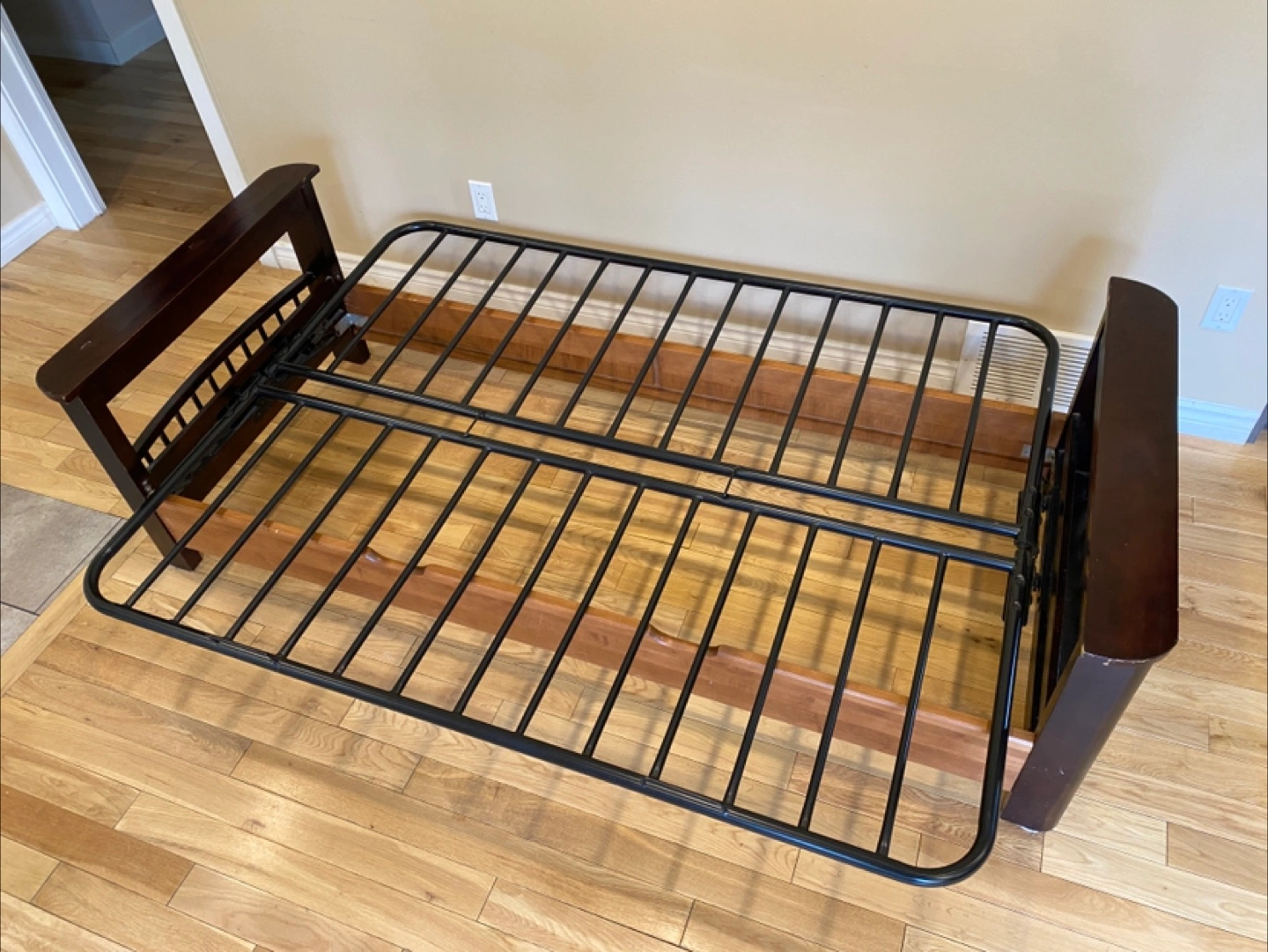 This Beautiful Full / Double Futon Sofa Bed easily converts from a sofa to a bed with a smooth and effortless mechanism—perfect for guests, naps, or everyday lounging. 🌟CAN DELIVER FOR SMALL FEE🌟 PRICE: $120 OBO Measurements: L80.8*W35*H36 Features: • Double size futon with thick, cozy cushions • Wooden armrests that lift to reveal hidden storage compartments on both sides • Smooth and sturdy transition between sofa and bed modes Pick up Barrhaven