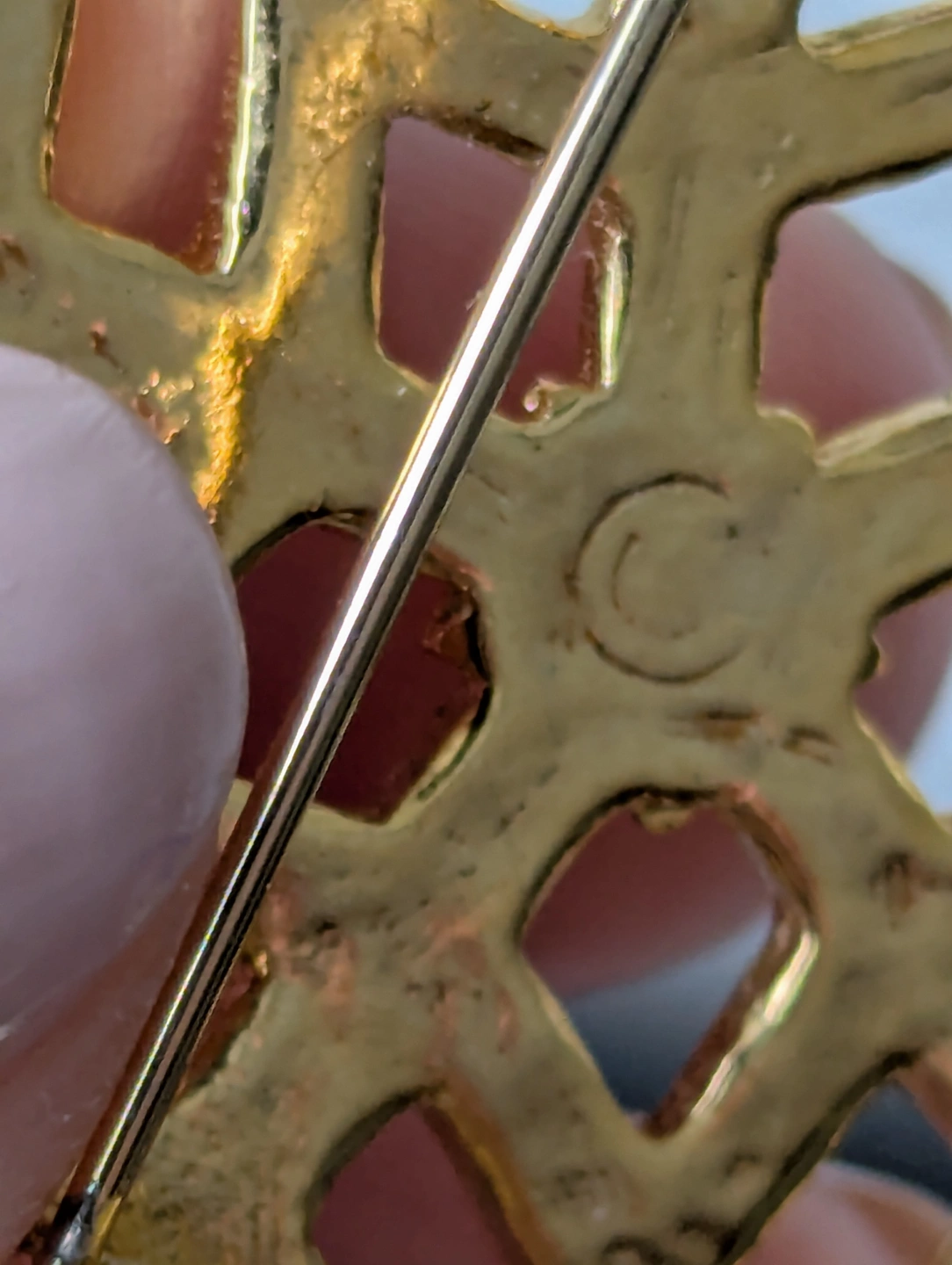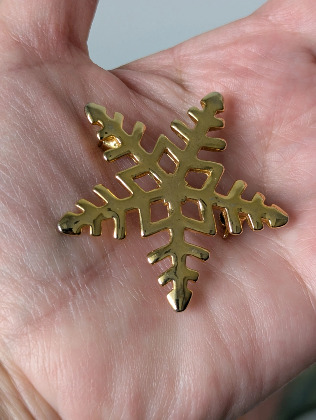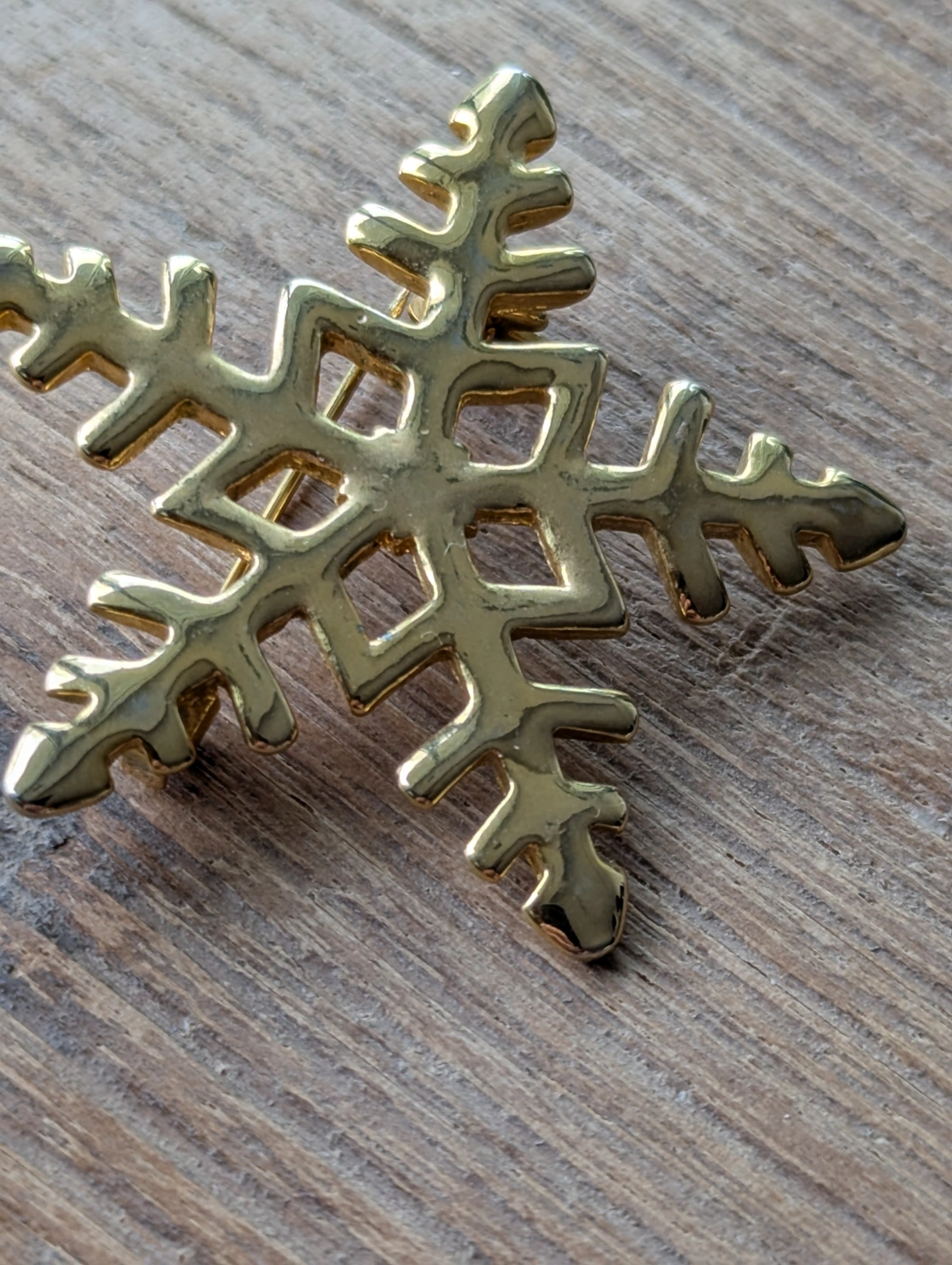 Beautiful gold-tone snowflake brooch. Intricate design. Perfect for the holiday season.