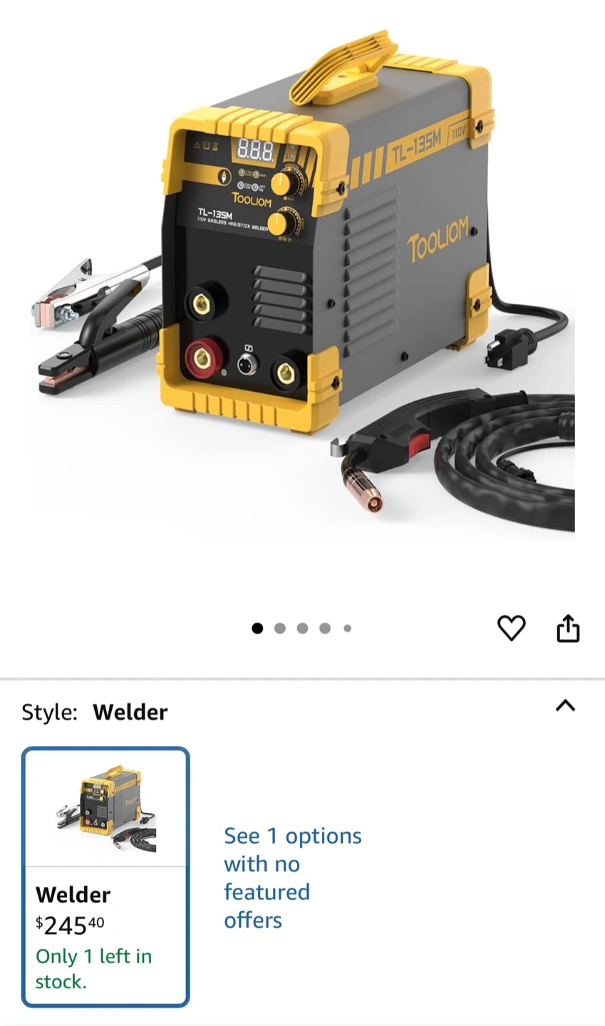 TOOLIOM TL-135M 110V Gasless MIG/Stick Welder