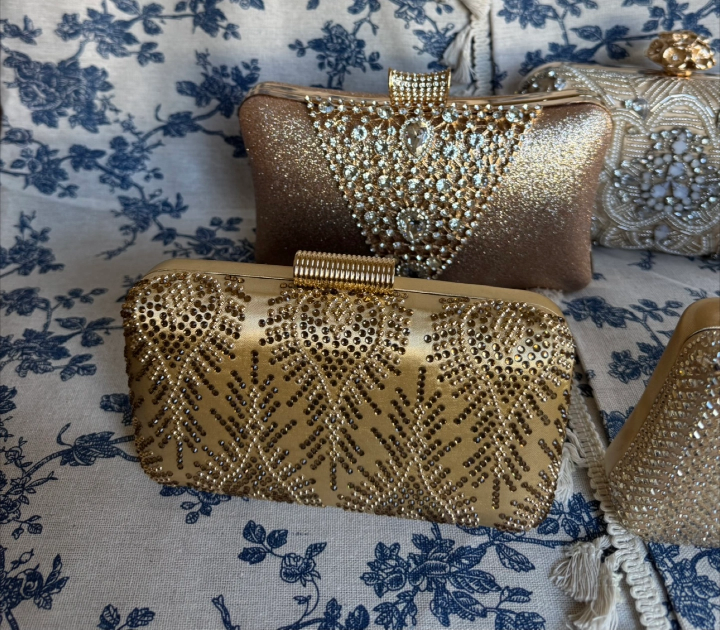 Beautiful collection of embellished clutches. Perfect for weddings or special occasions. Features pearls and crystals.