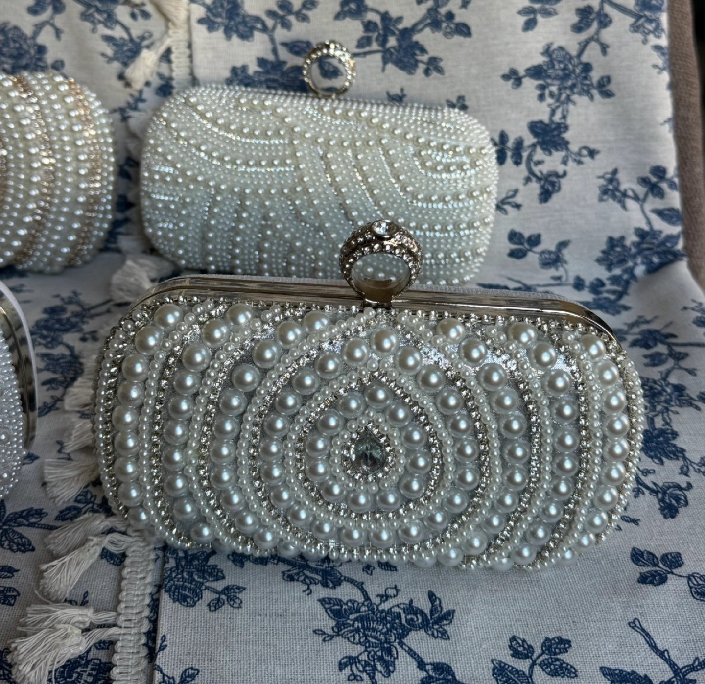 Elegant Pearl and Crystal Evening Clutches