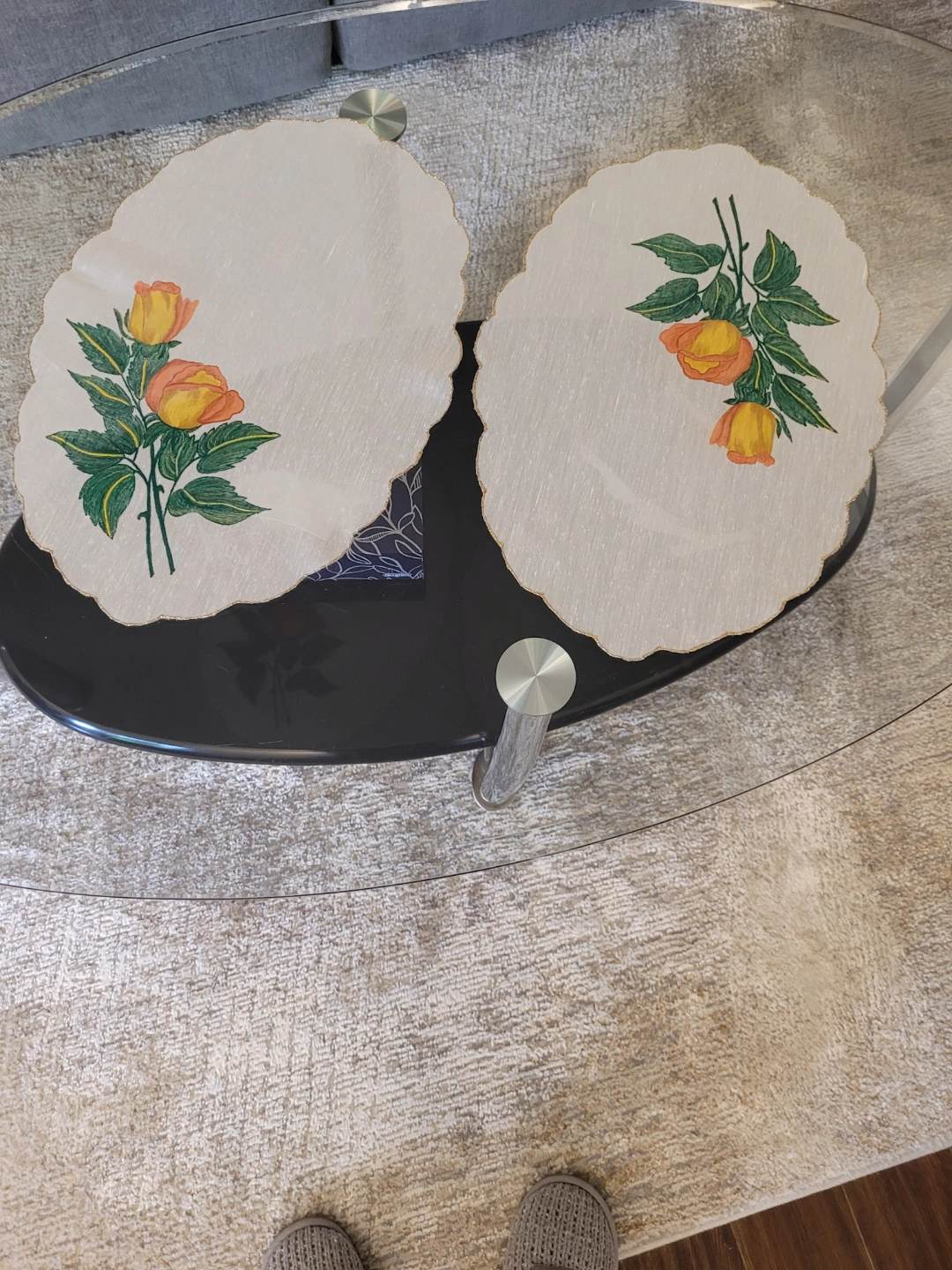 HAND MADE PAINTED Pair of Decorative Rose Placemats