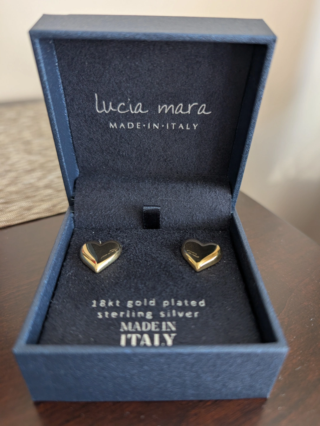 Beautiful heart-shaped earrings. 18kt gold plated sterling silver. Made in Italy. Comes in original box.