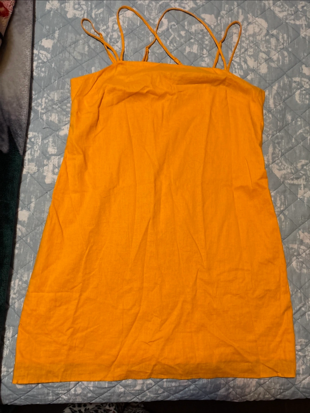 Adorable mustard yellow sundress. Size Medium. Linen blend. Adjustable straps. Simple and stylish.