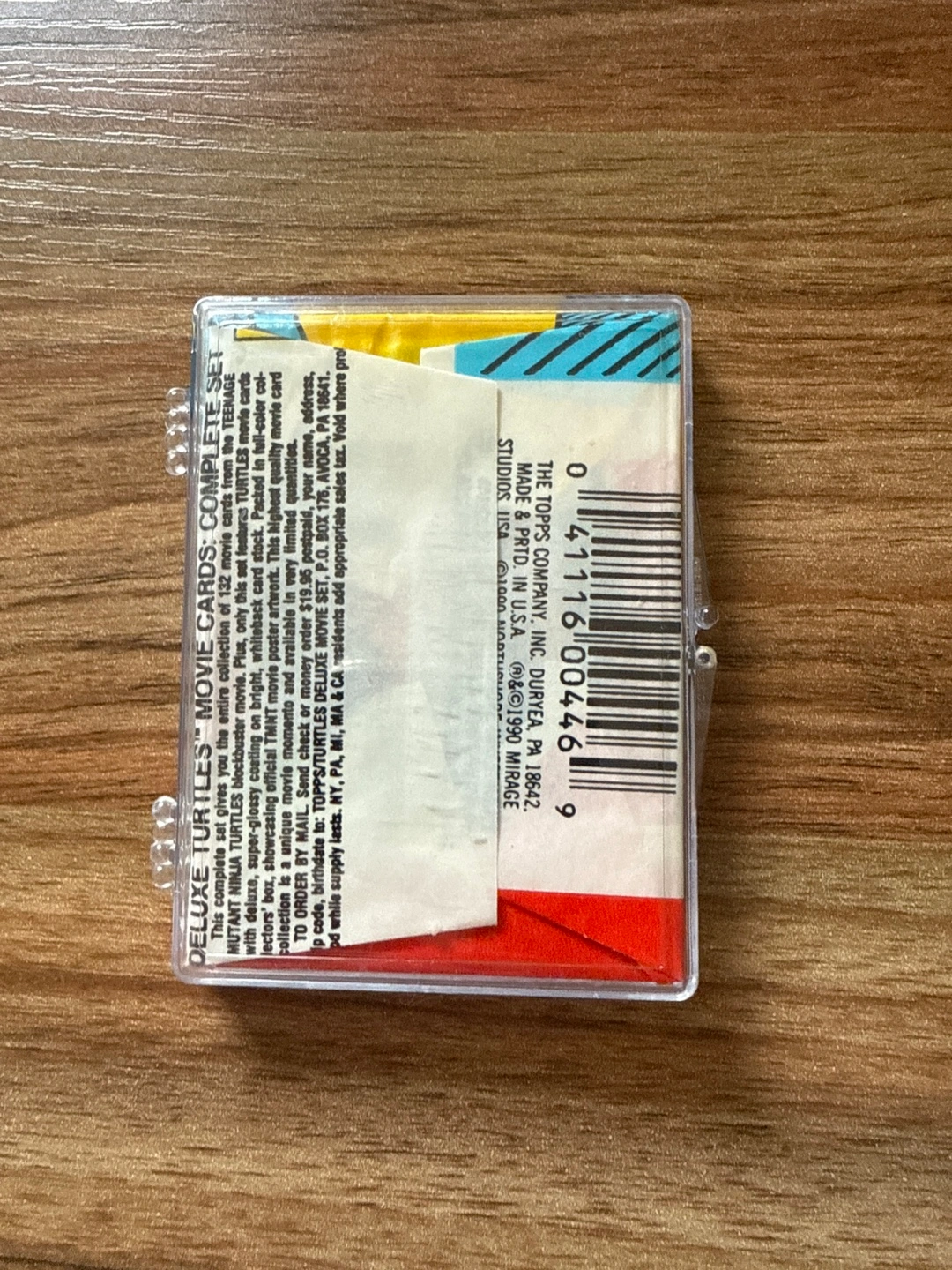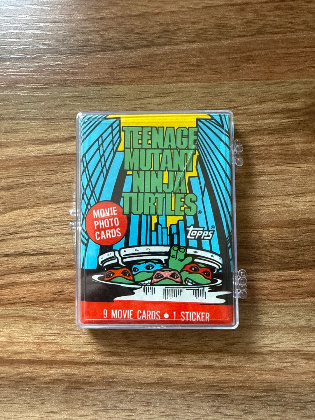 Vintage Teenage Mutant Ninja Turtles movie photo cards. pack includes nine cards and one sticker. Comes in original plastic case. Collectible item for fans.