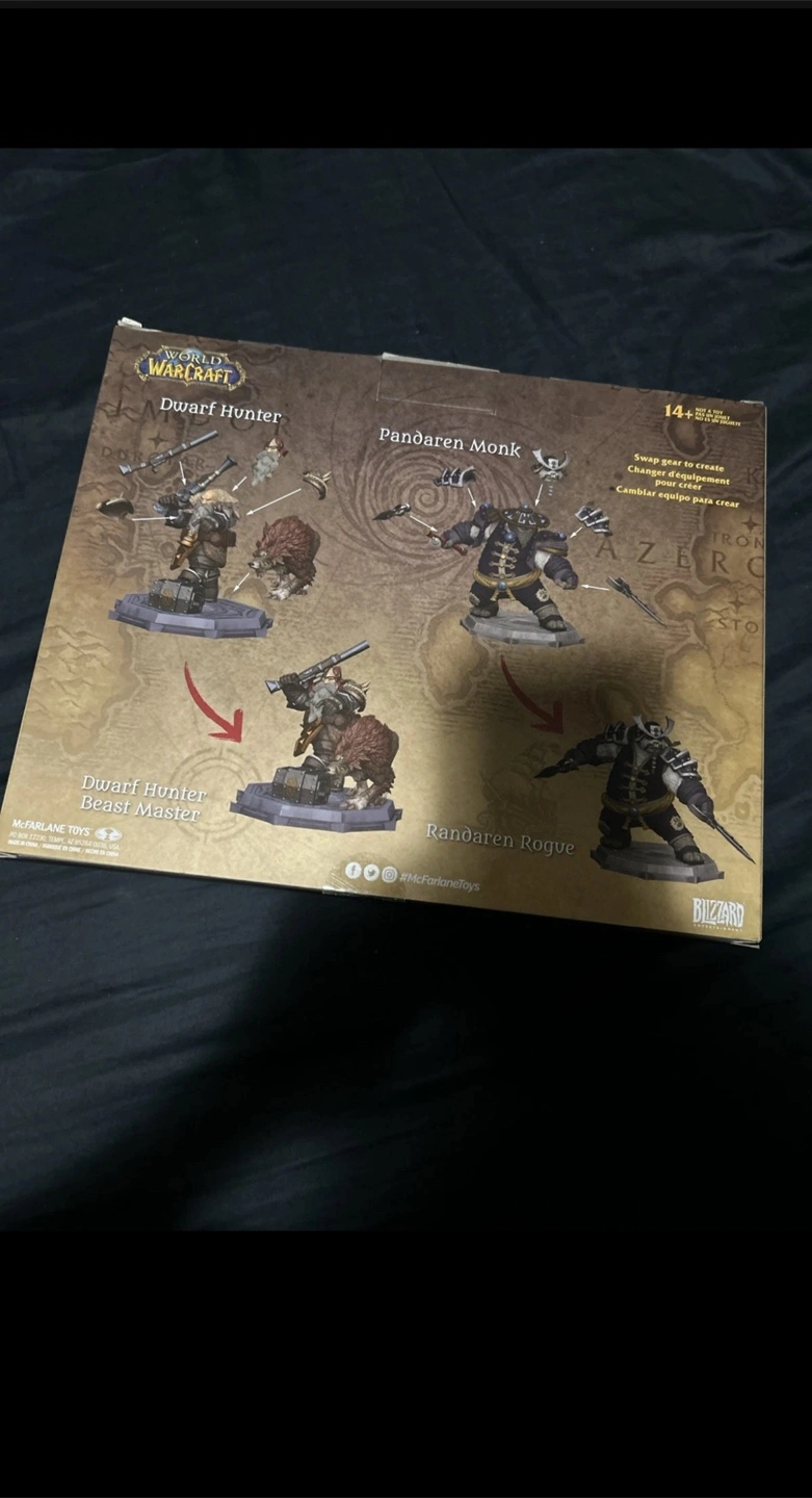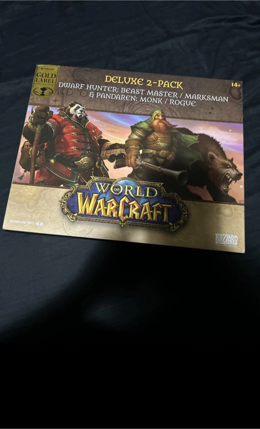 Collectible World of Warcraft figurines. Deluxe 2-pack includes Dwarf Hunter Beast Master and Pandaren Monk/Rogue. New in box.