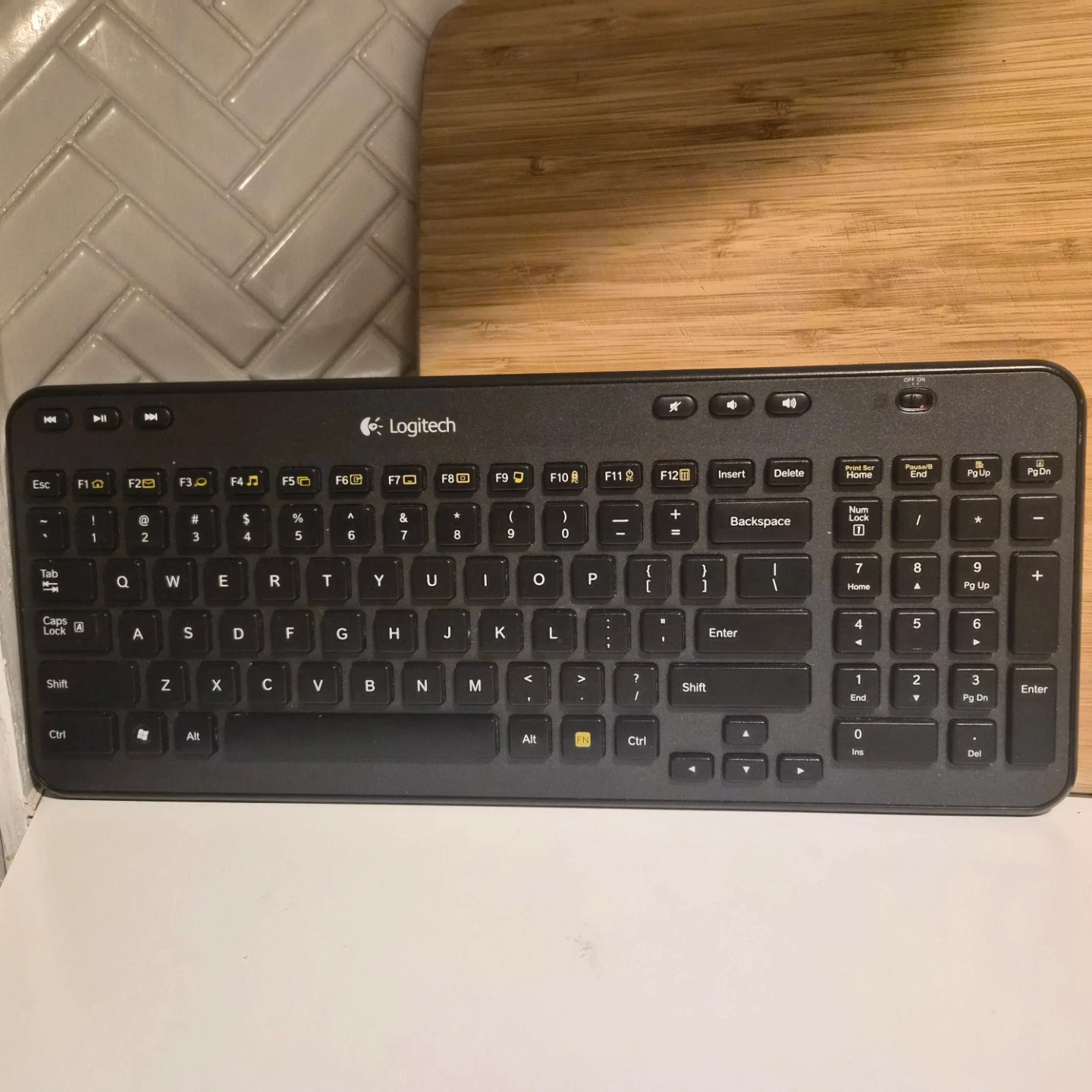 Logitech full sized (with numpad) wireless keyboard. Great condition, gently used and ready for use with USB included.