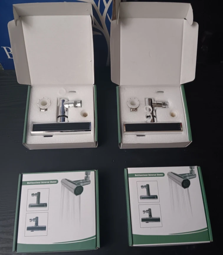 New in box. Chrome finish. Includes kitchen faucet shower head, adjustable bracket, and extra parts. Easy installation. Versatile design. Great water pressure performance