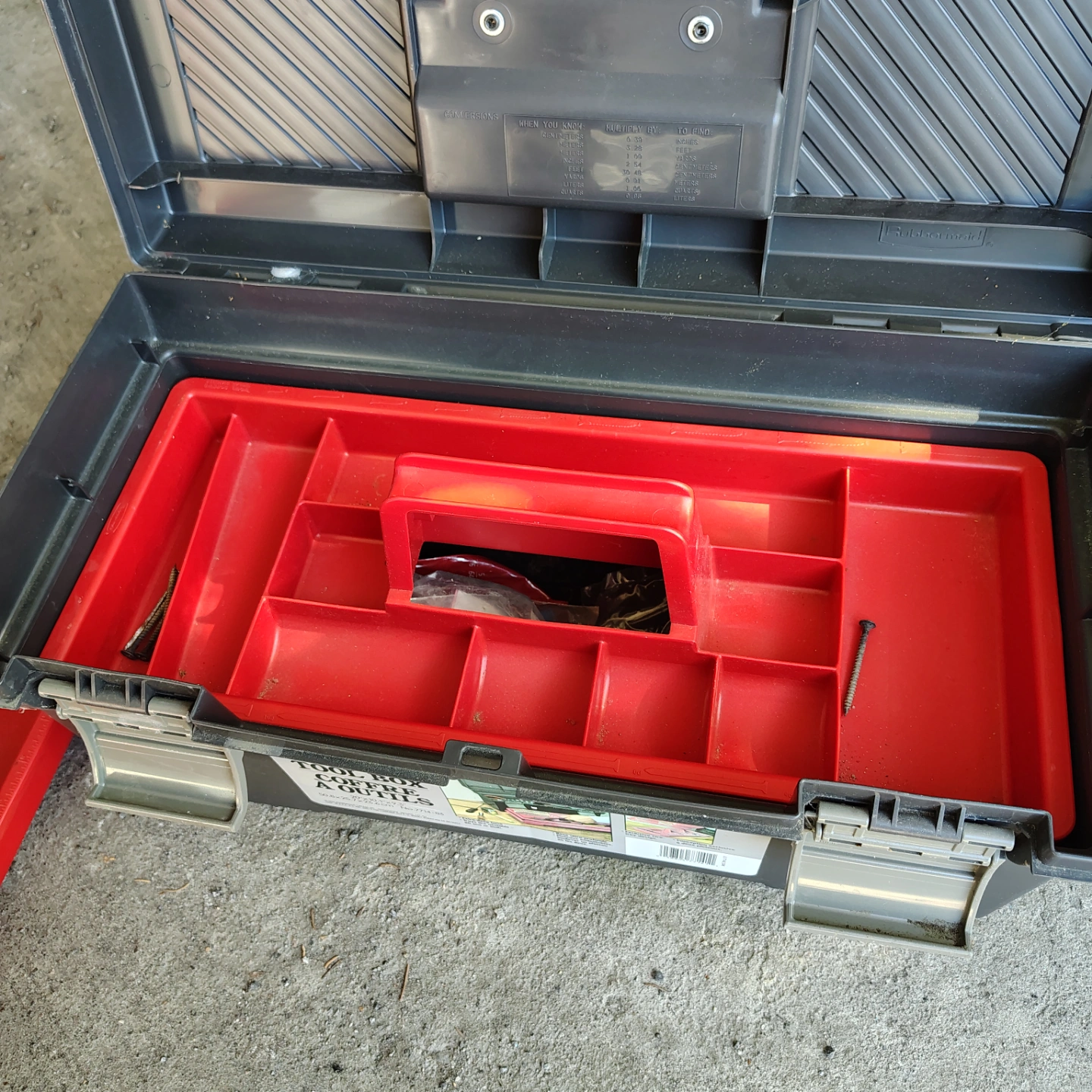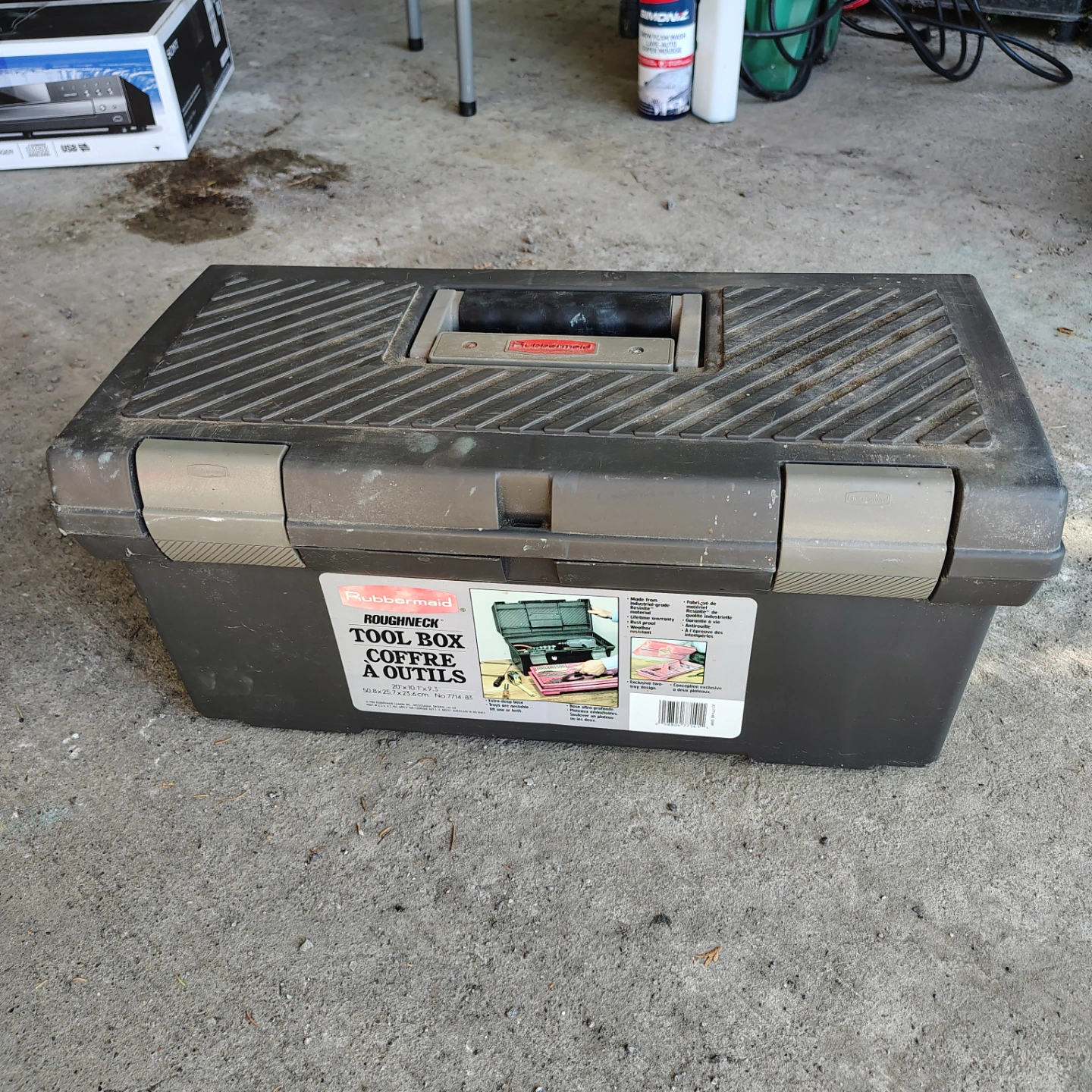 Buy & SellRubbermaid Roughneck Tool Box with Assorted ToolsRubbermaid Roughneck Tool Box with Assorted Tools$20Large plastic tool box. Grey exterior, red interior tray. 3 sets lf drill bits and various screws included . Shows some wear from use.ConditionGoodWHERE TO MEETCheck LocationView MapSELLERverifiedOmerDavidson Heights750 reviews1 chats·0 favorites·18 views