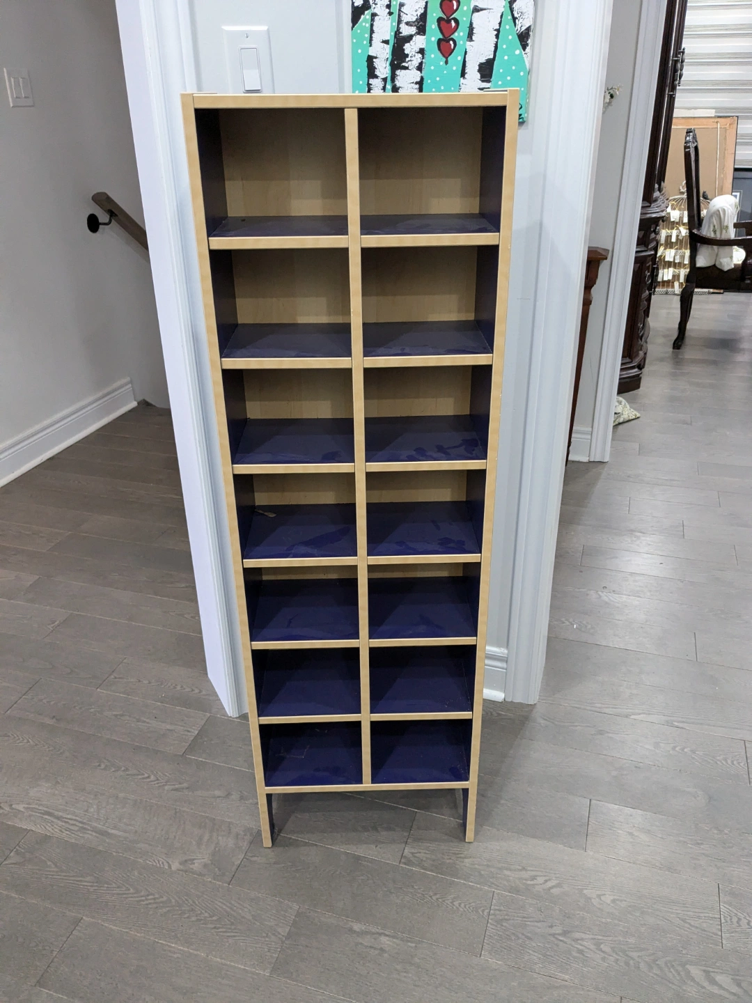 Selling a blue multi-cubby storage shelf, perfect for organizing classroom materials, kids’ items, craft supplies, shoes, or small household essentials. Sturdy and compact — fits great in tight spaces!
