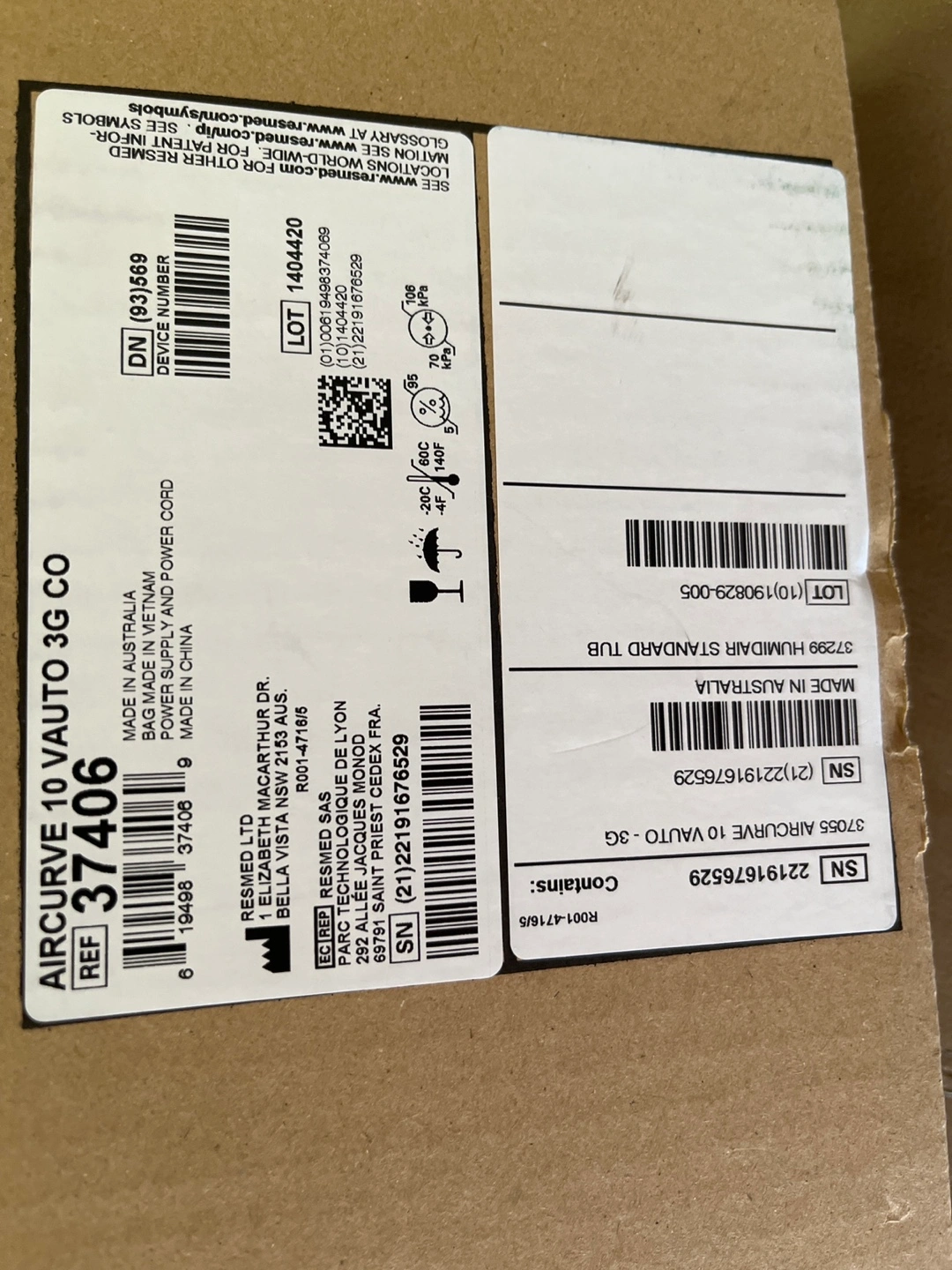 ResMed AirCurve 10 VAuto 3G. Made in Australia. Includes power supply and cord.