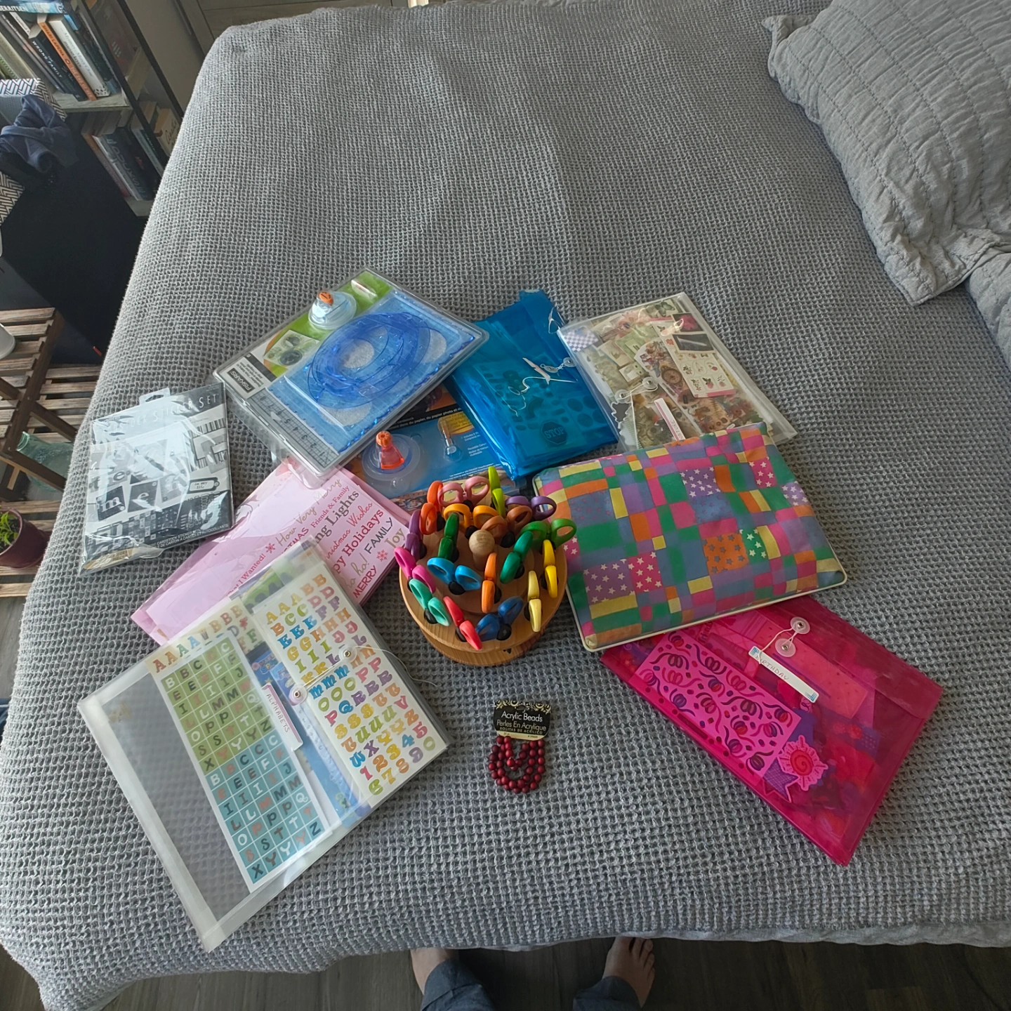Large lot of scrapbooking supplies. Includes alphabet stickers, cardstock stickers, and Fiskars shape punches. Perfect for crafting and card making. Various themes and styles, great for art and primary school teachers. Free to a good home =)