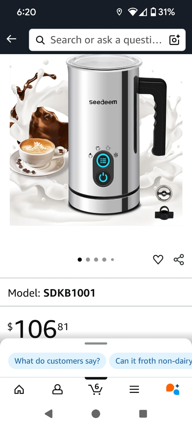 Stainless steel milk frother. New in box. Includes instruction manual. Great for making lattes and cappuccinos. Model SDK B1001.