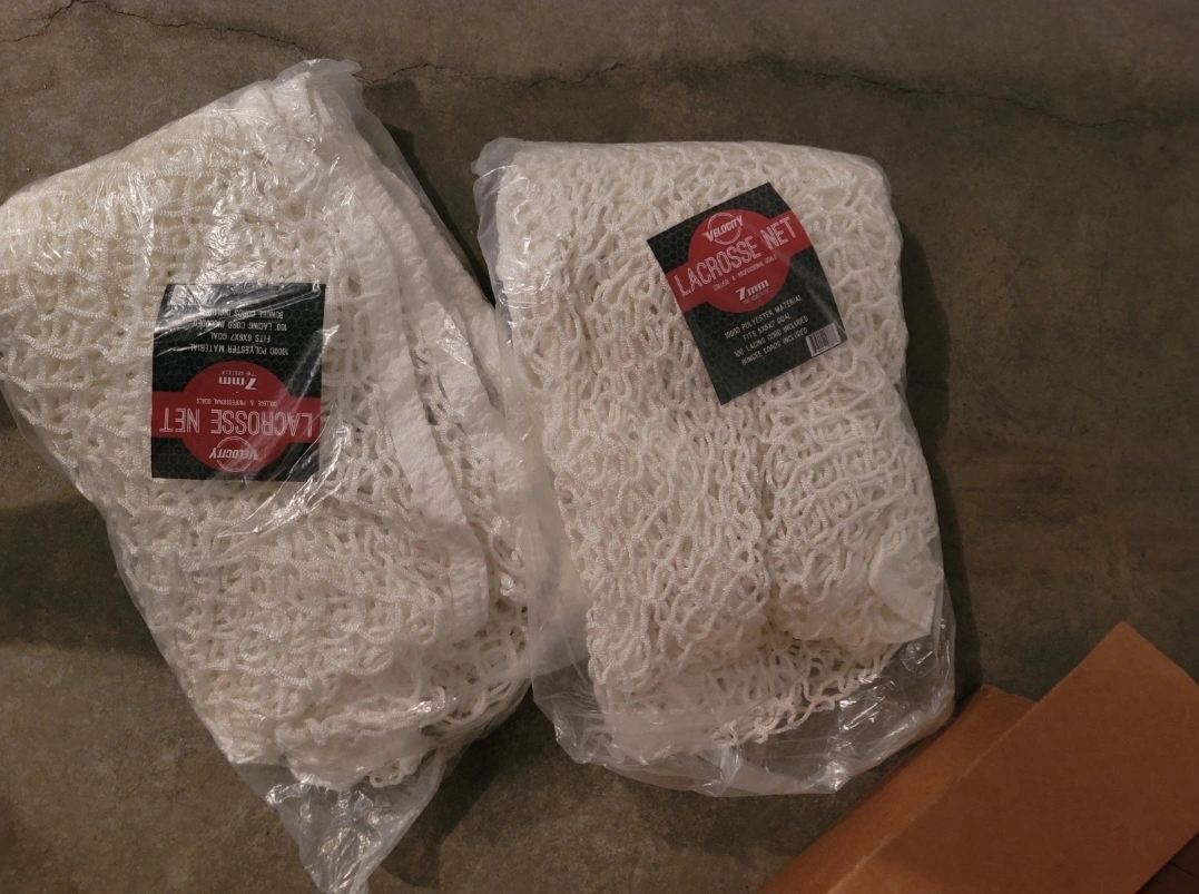 2 Pack - Velocity 7MM Heavy Duty White Lacrosse Net, AKA Godzilla | Weatherproof, UV Resistant |1000d High-strength Polyester, 40% Stronger. 100+ Feet of Lacing Cord, 4 Quick Ties for Easy Assembly. New never used, pick up in panatella walk nw Calgary