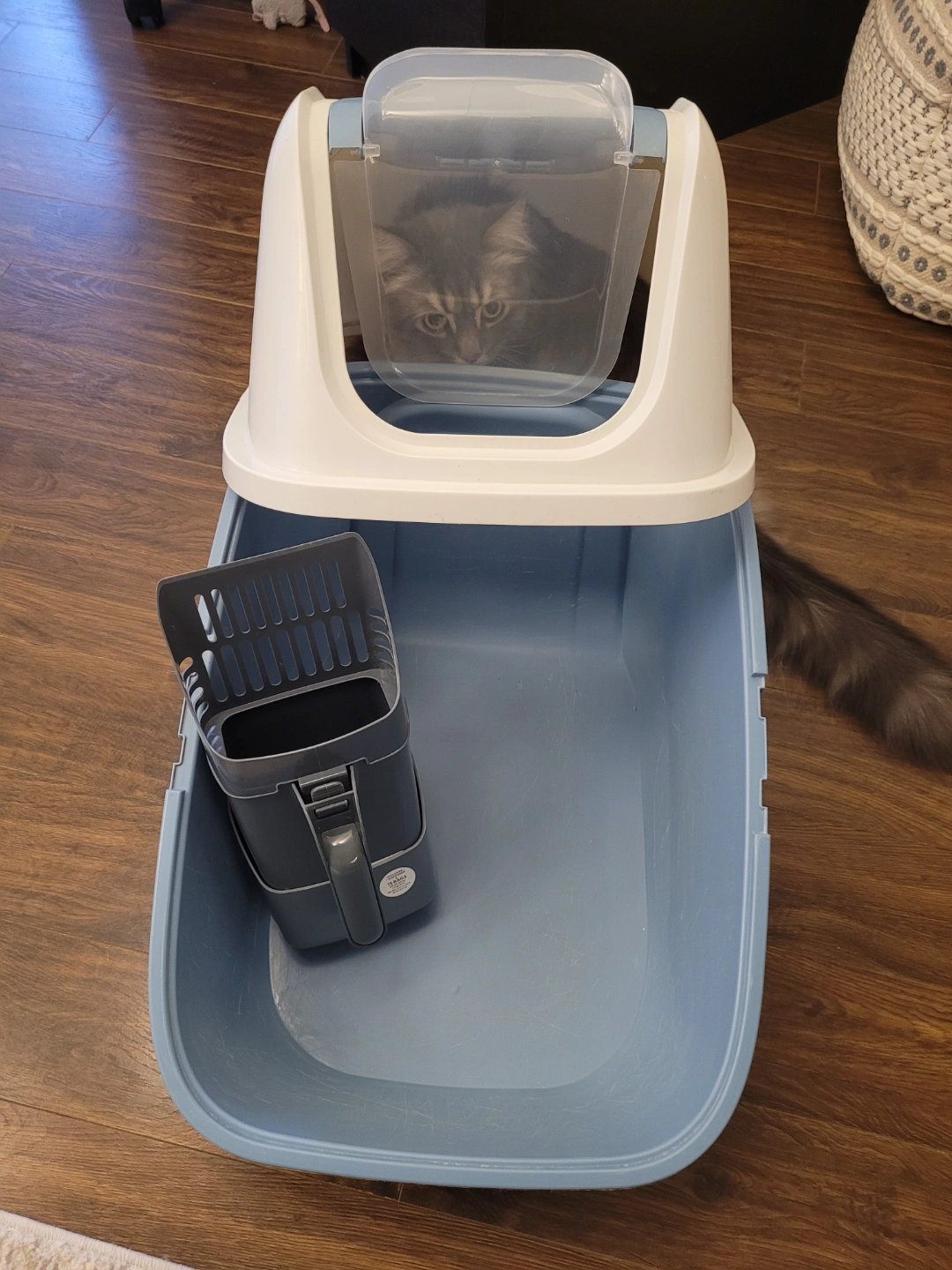 CAT IS NOT INCLUDED ππ Enclosed cat litter box with extra large soop including bags Features a removable door and carbon filter. Easy to clean.exellent condition.