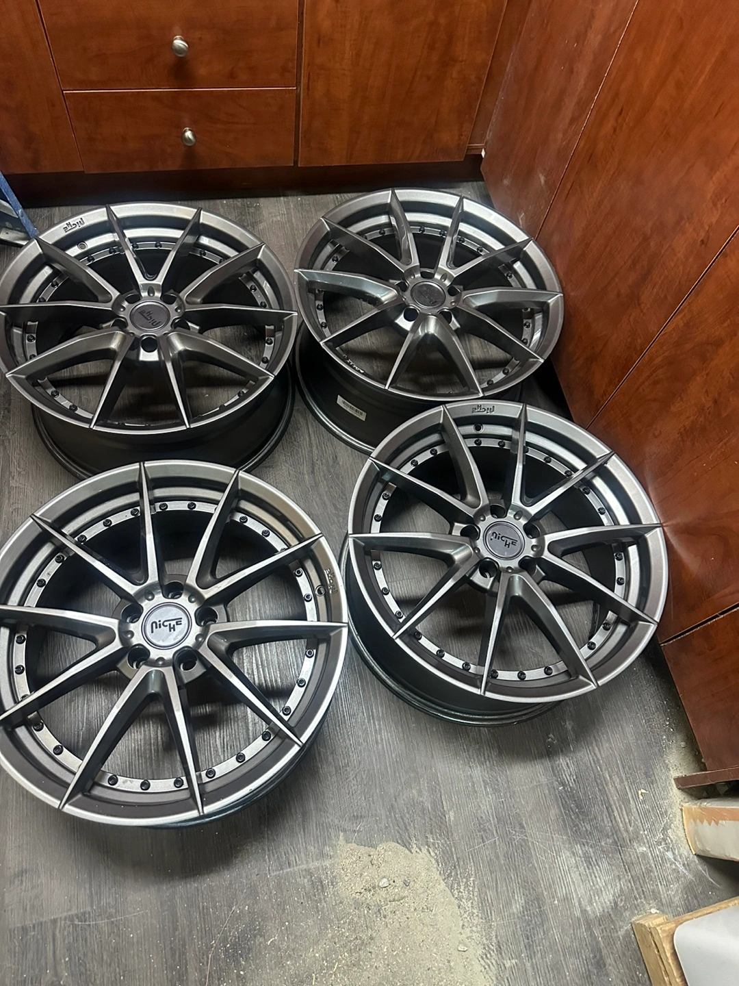 Buy & SellNiche Wheels - Set of Four Gunmetal Grey Aftermarket RimsNiche Wheels - Set of Four Gunmetal Grey Aftermarket Rims$630Set of four Niche aftermarket rims. Gunmetal grey finish. Ten-spoke design. Excellent condition. No tires included.ConditionGoodWHERE TO MEETCheck LocationView MapSELLERverifiedShivCentral Park650 reviews6 chats·1 favorites·123 views