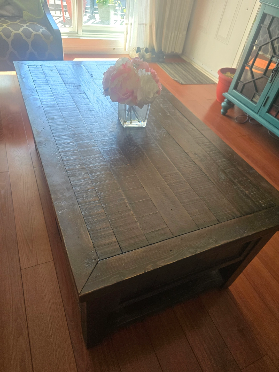 Brown Coffee Table with Glass Top