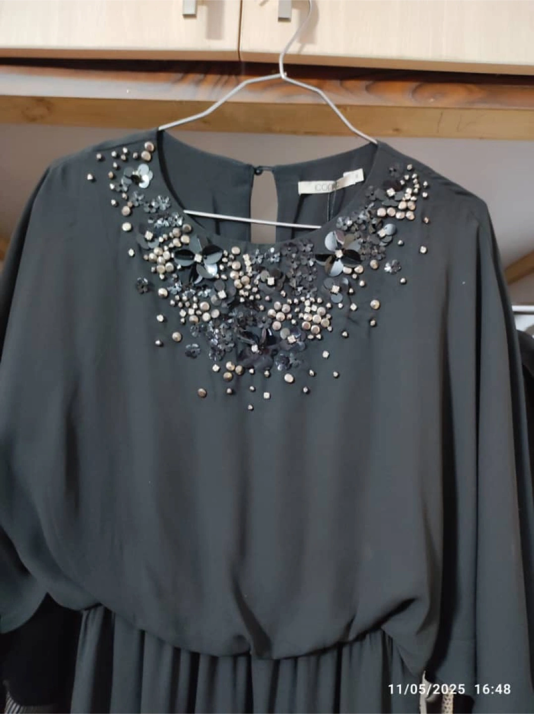 71Beautiful black maxi dress. Features a stunning beaded neckline. Flowy fabric. Perfect for special occasions. Brand new bought from Dubai