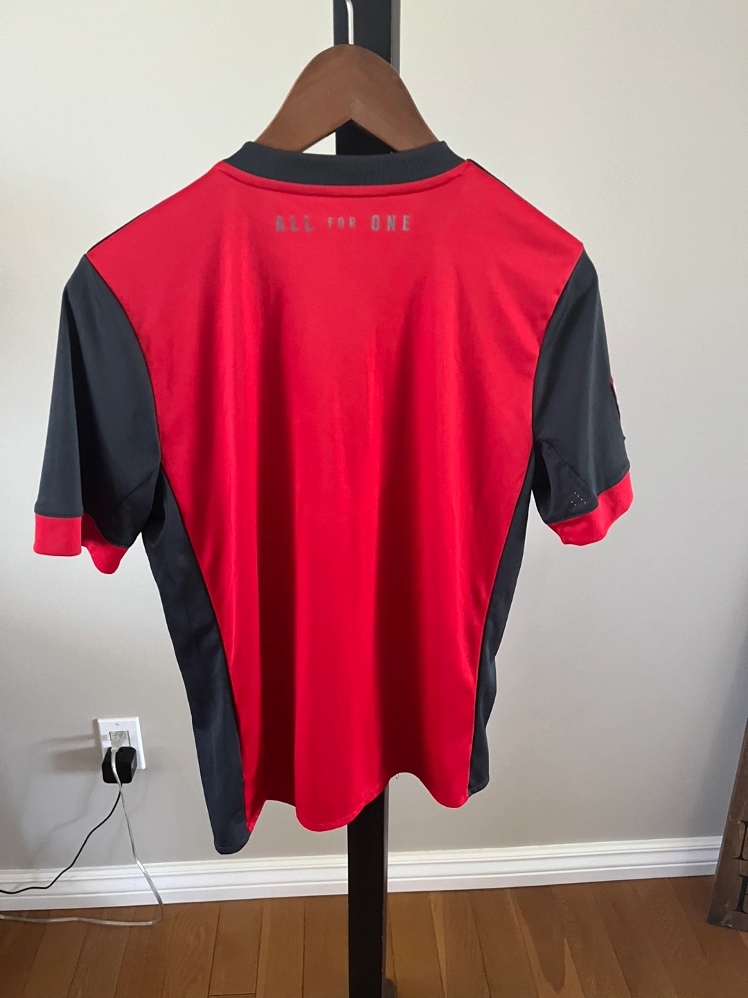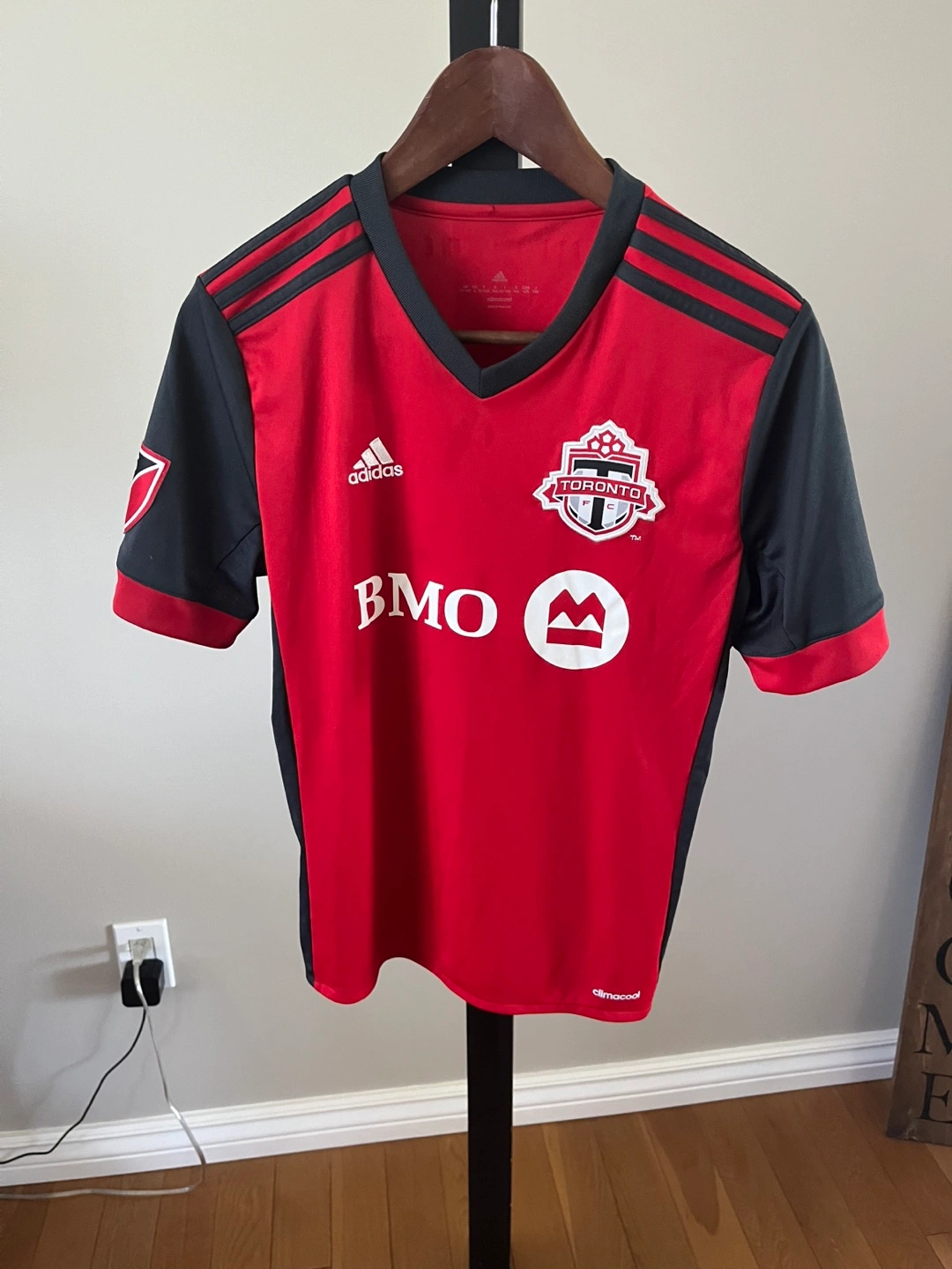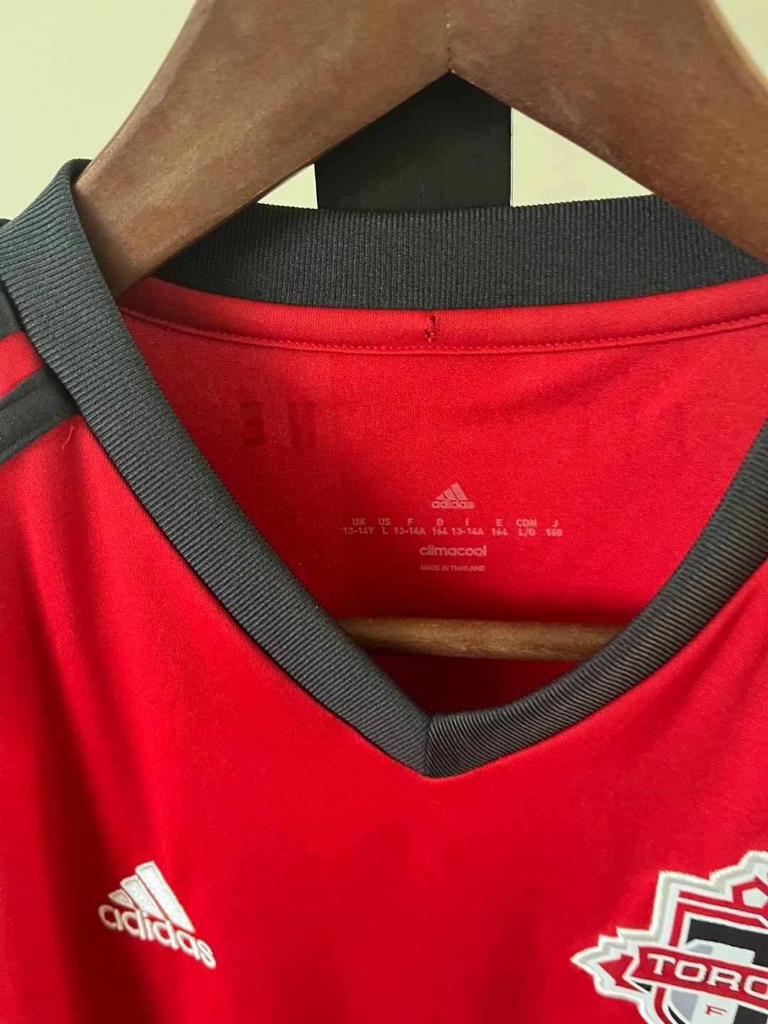 Youth Toronto FC soccer jersey. Adidas Climacool technology. Size Large. All For One on the back. BMO and Toronto FC logos. Pick up in Liberty Village