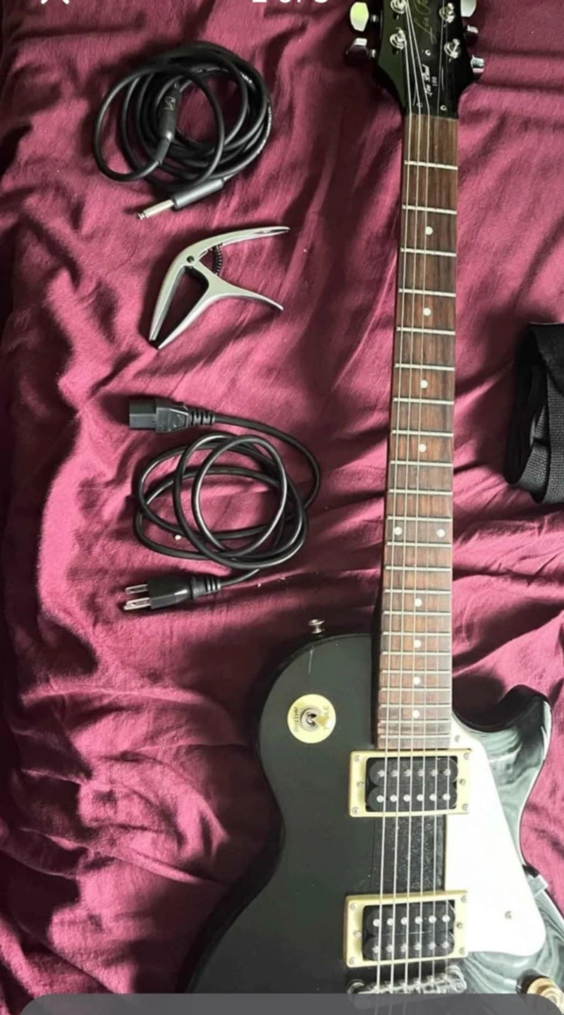 Great starter package for aspiring guitarists. Includes a Fender Mustang Micro amp, black electric guitar, guitar cable, guitar strap, and a capo. Perfect for practice and learning