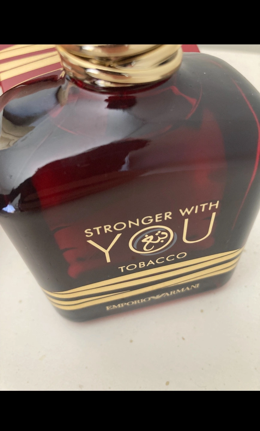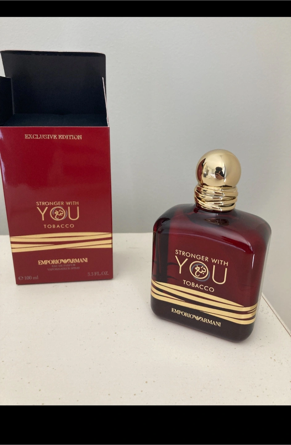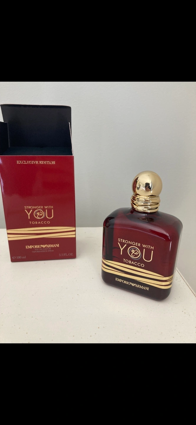 100ml exclusive edition. Eau de Parfum in box. Strong scent. Selling an Emporio Armani Stronger With You Tobacco Eau de Parfum (100ml) from the Exclusive Edition collection. • Rich, warm scent with notes of tobacco, vanilla, chestnut, and spices • Perfect for fall/winter & evening wear • Authentic product with original box • Long lasting, bold fragrance for men who like a sophisticated, sweet tobacco vibe