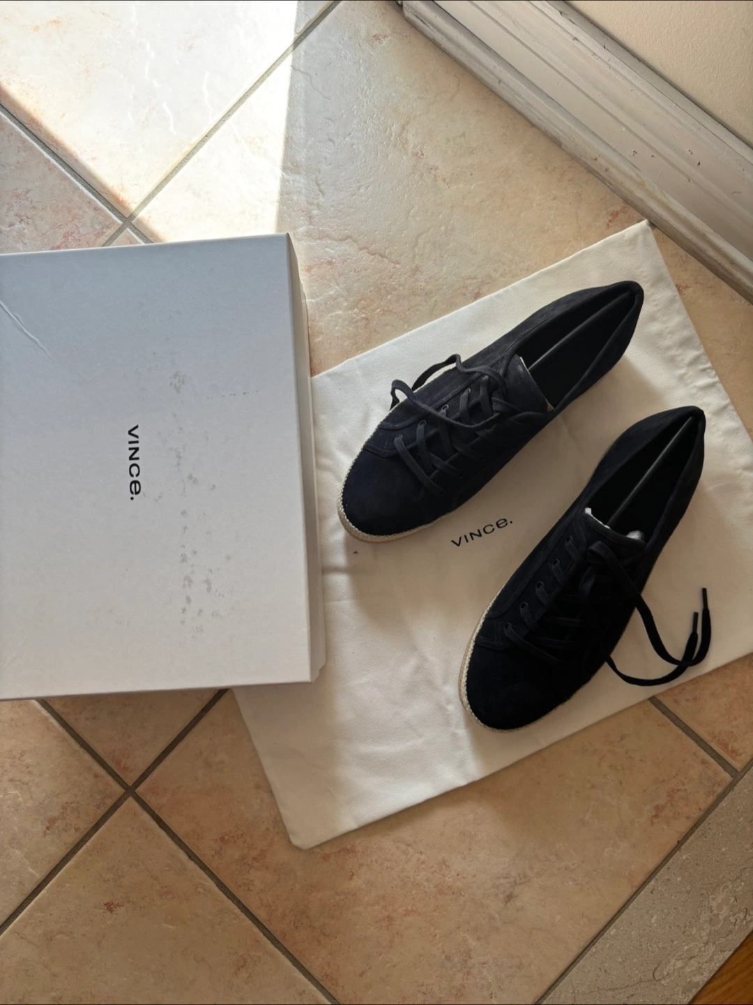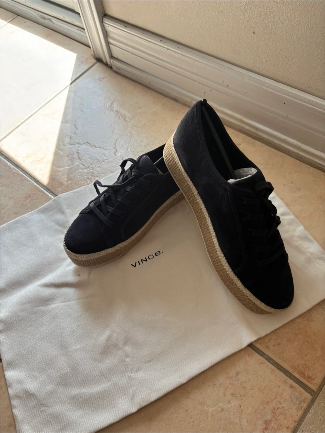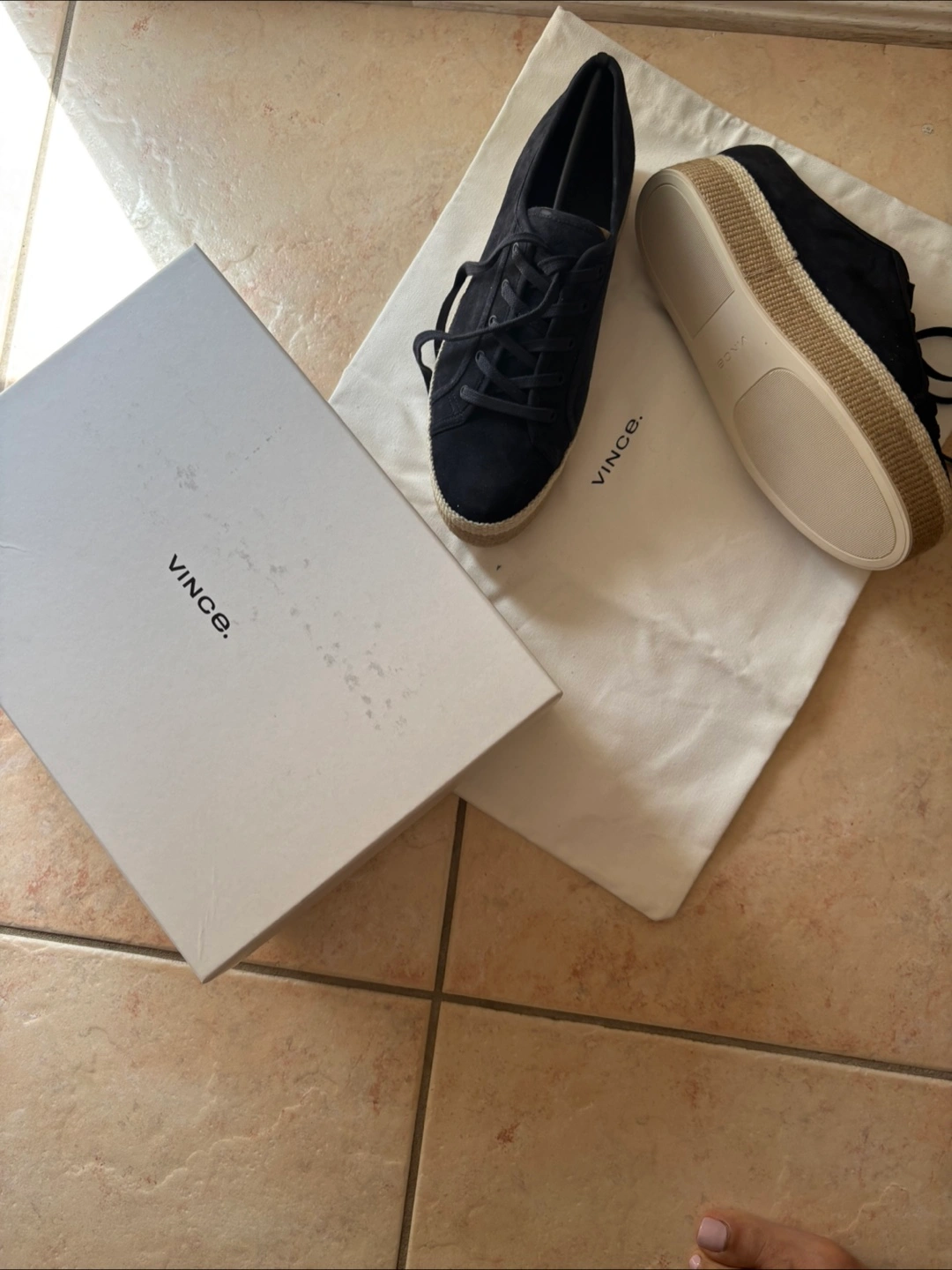 21Pair of navy suede platform sneakers. Lace-up closure. Comes with dust bag. Brand New!