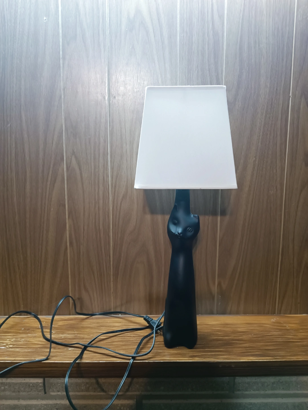 Black Cat Table Lamp with White Shade Including Warm White Bulb