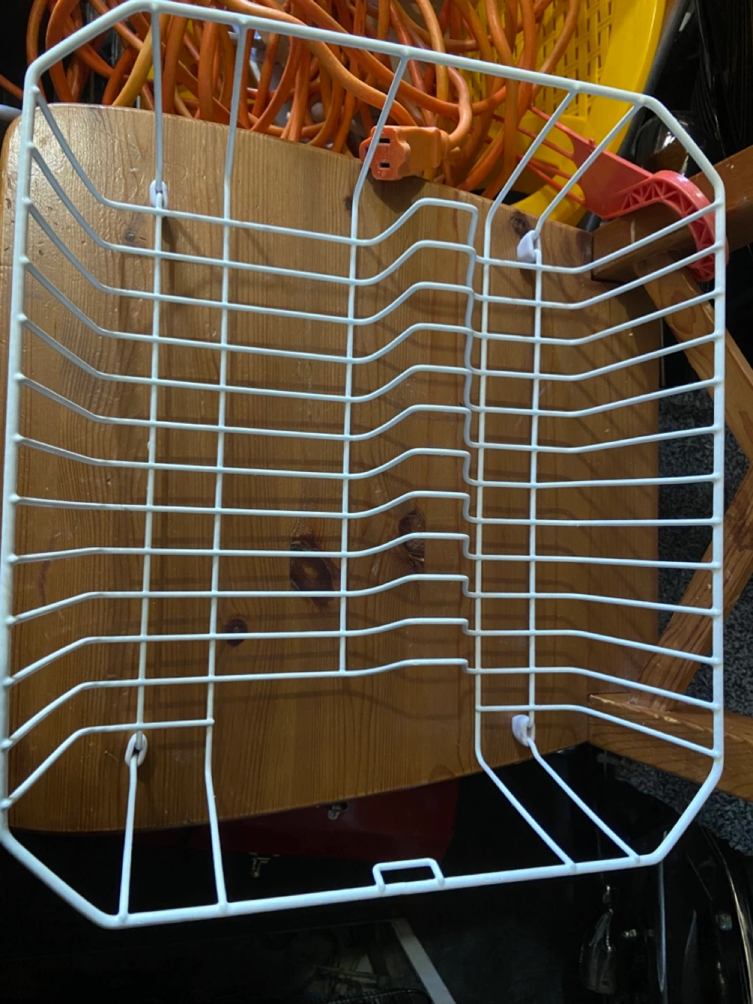 White wire dish drying rack. Good condition. Perfect for small kitchens or RVs.