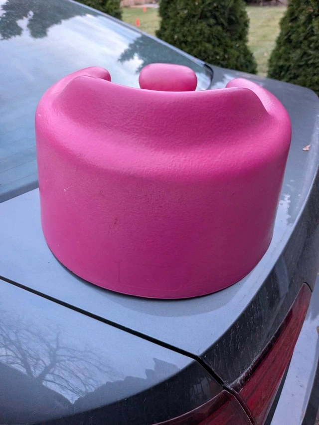 Pink Bumbo seat in excellent condition. Great first chair for baby, can go on a turntable top during mealtime (with close supervision!) or on the floor. Very portable, easily thrown in the car for trips to Grandma's, to the beach, out in the backyard, etc. Feel free to message if you have any questions!