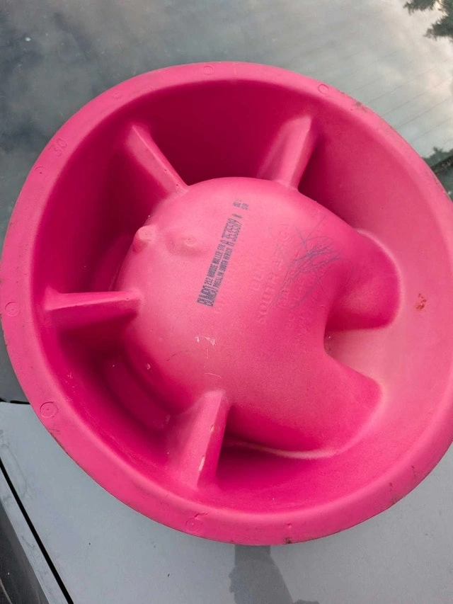 Pink Bumbo seat in excellent condition. Great first chair for baby, can go on a turntable top during mealtime (with close supervision!) or on the floor. Very portable, easily thrown in the car for trips to Grandma's, to the beach, out in the backyard, etc. Feel free to message if you have any questions!