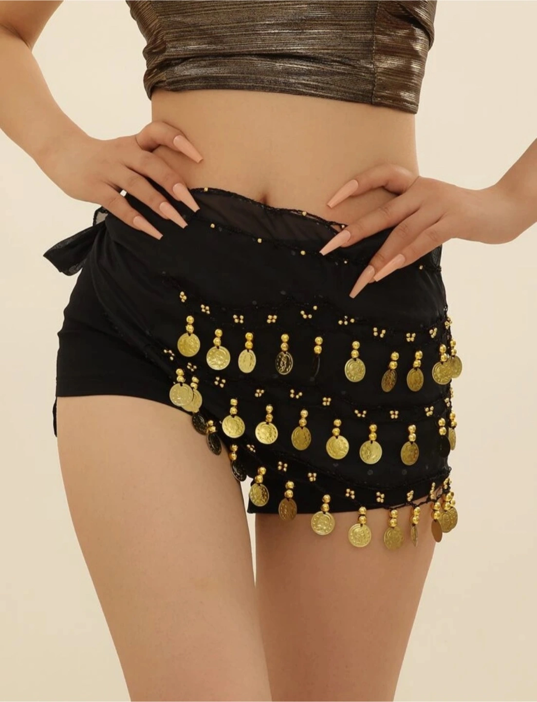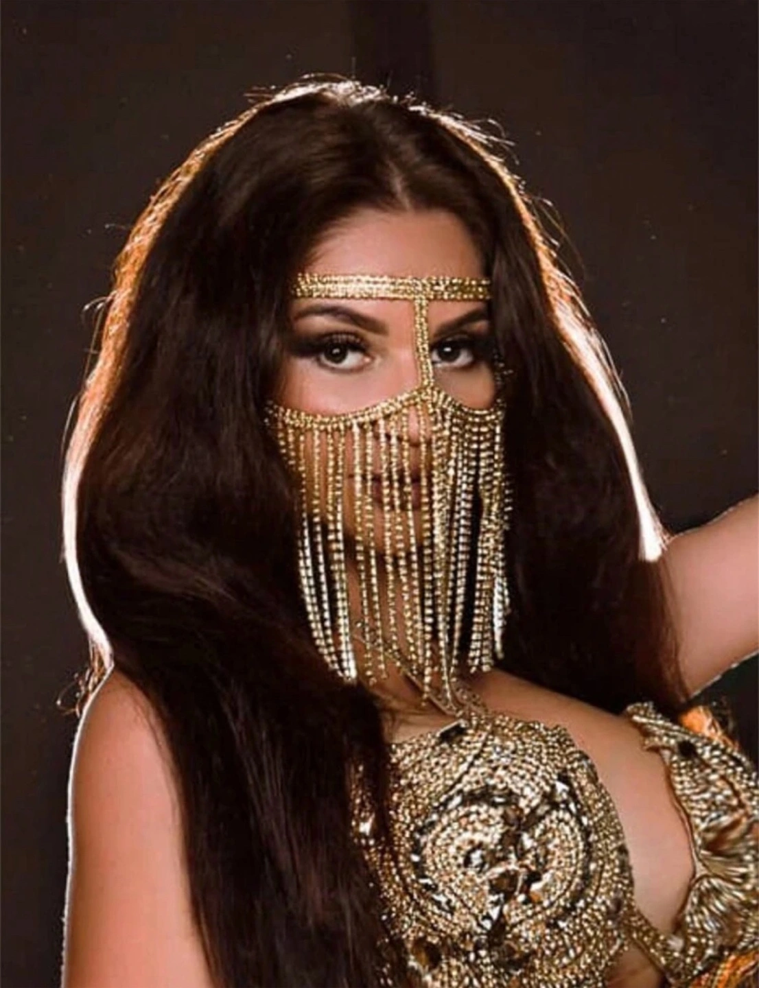 Belly Dance Costume Set: Rhinestone Face Mask & Coin Belt