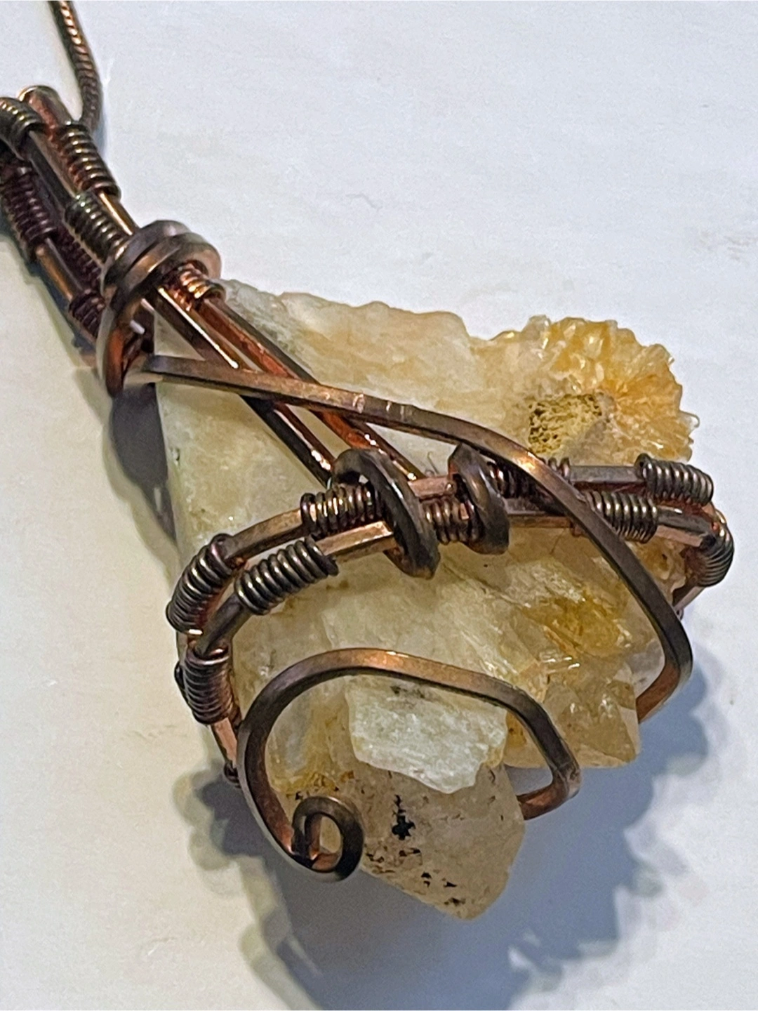 20Unique handmade necklace. Features a beautiful citrine quartz cluster wrapped in copper wire. Beautiful earthy tones. Great gift.