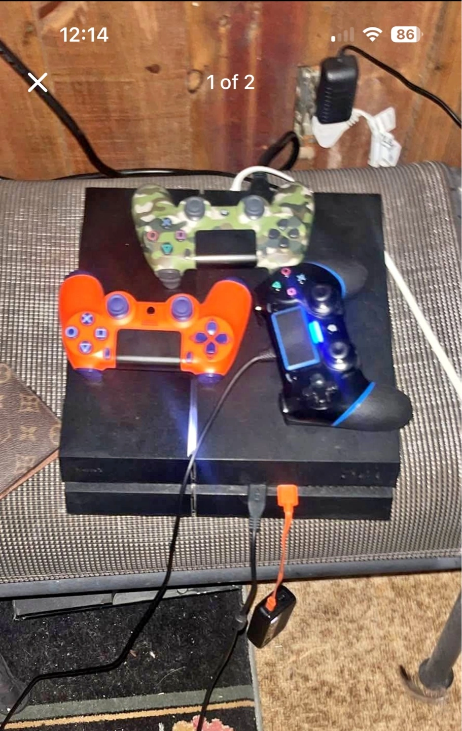 38PS4 console, three controllers included. Two standard controllers and one camouflage controller. Great condition.