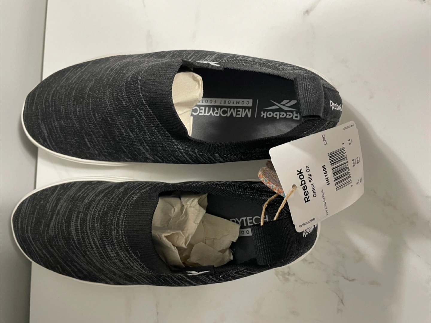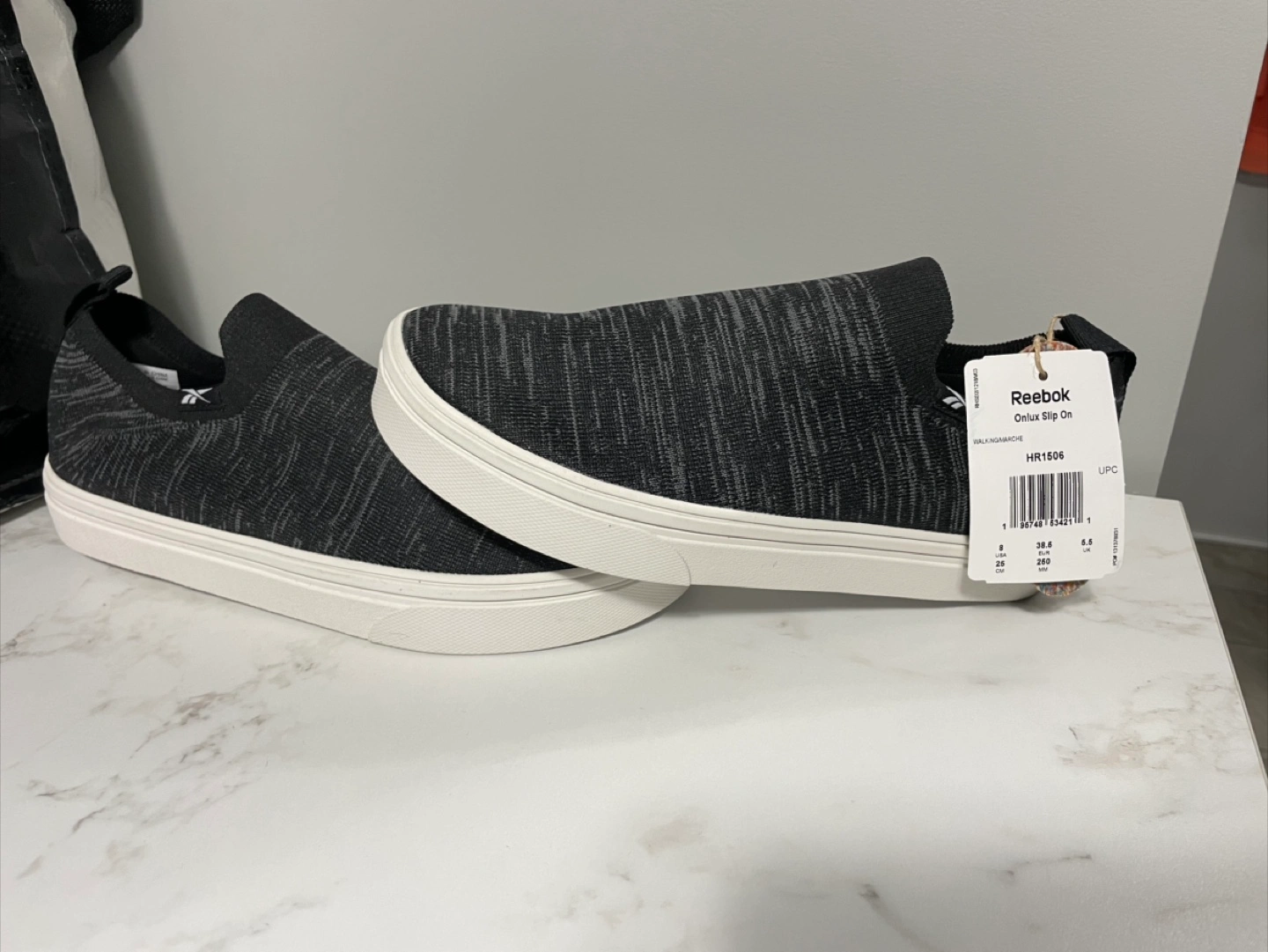 62Reebok slip on shoes Onlux slip on Brand new never used still comes with tags They are a pair but different size Right shoe size: 8.5 women’s Left shoe size: 8 women’s