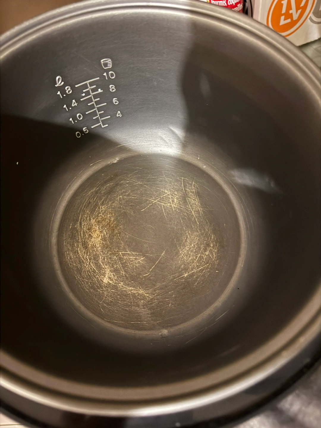 Black rice cooker. 10cups. Cook and keep warm functions. Minor scratches inside the bowl. Includes power cord.