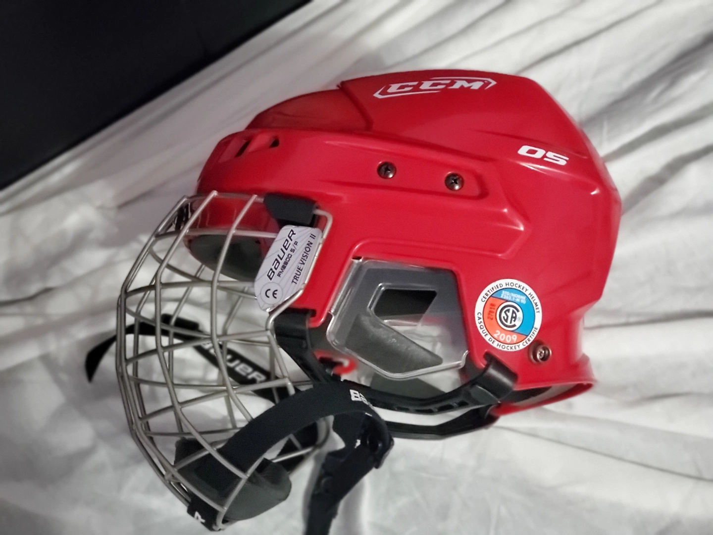 CCM Red Hockey Helmet with Bauer Cage (Certified hockey helmet)