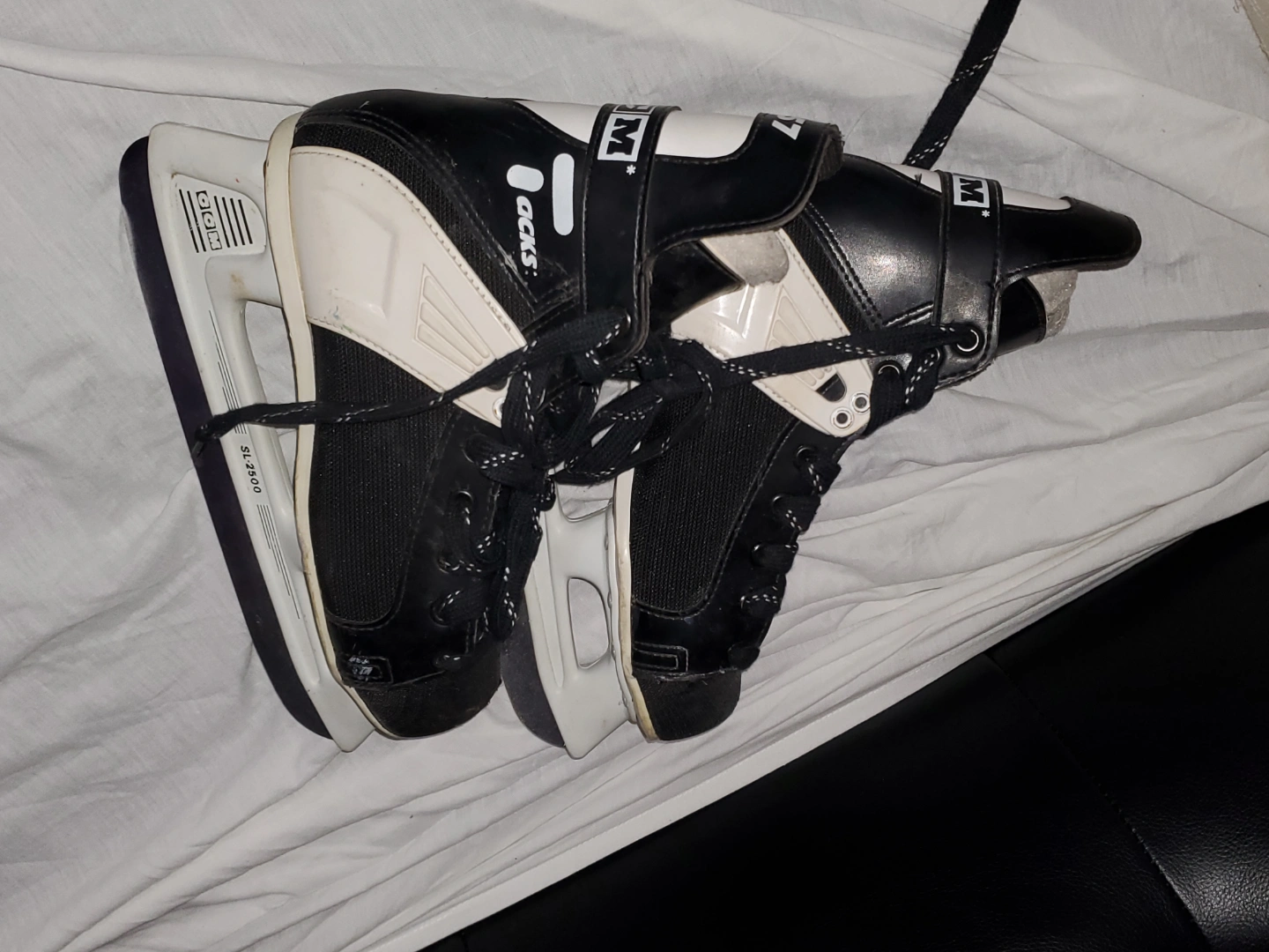 Used CCM ice skates. Black and white. Size 6. Good condition. Show some wear.