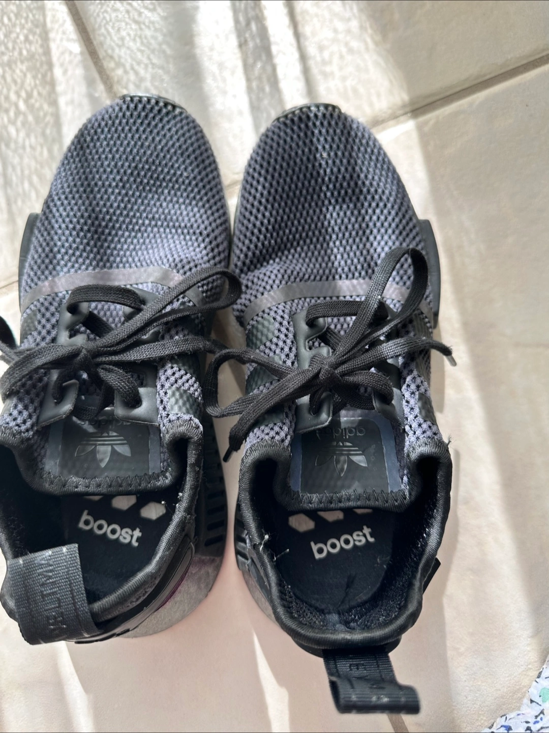 Pre-owned Adidas NMD_R1 running shoes. Black colourway. Boost technology. Excellent for everyday wear or running.