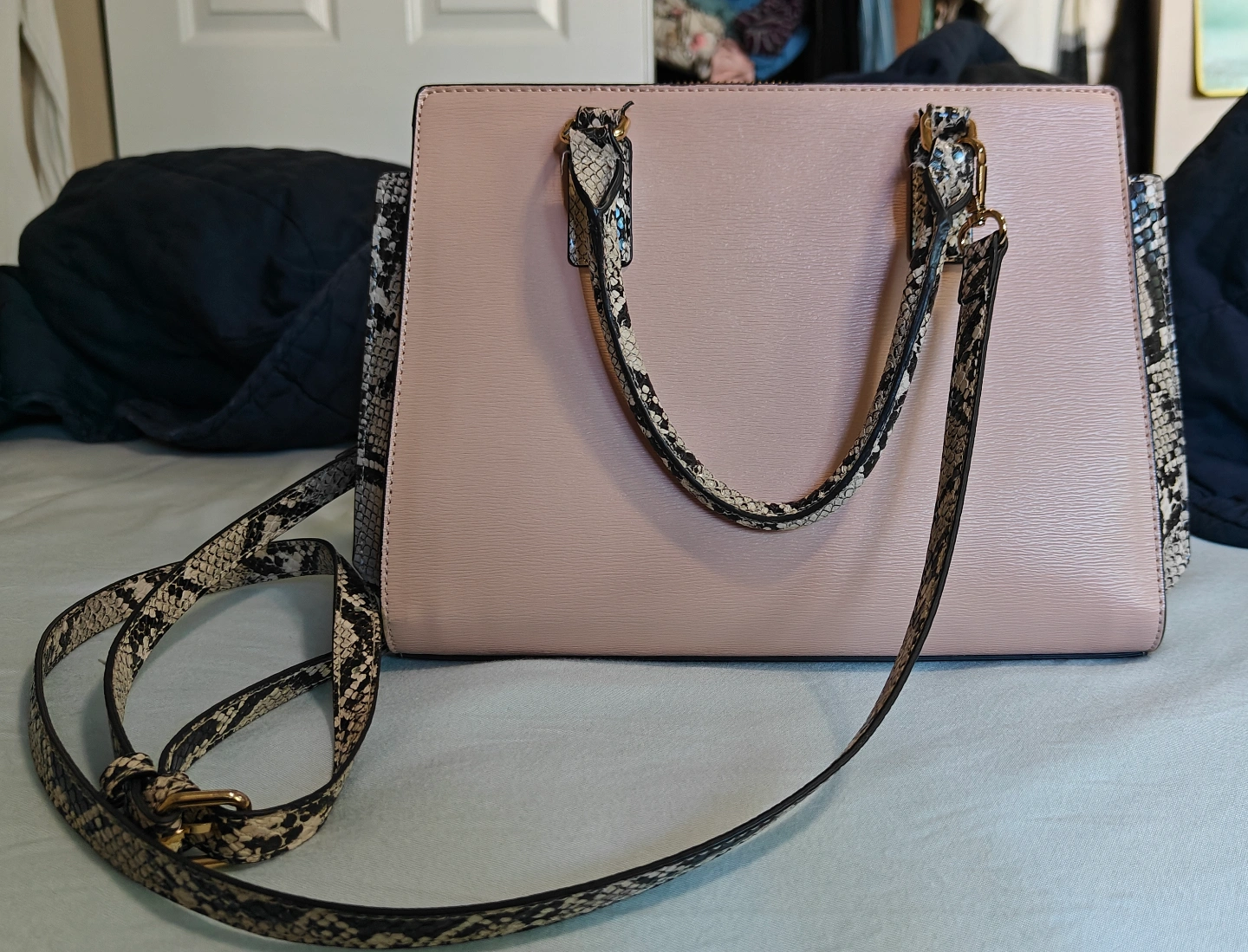 ALDO Pink and White Snakeskin-Trim Satchel π§‘π