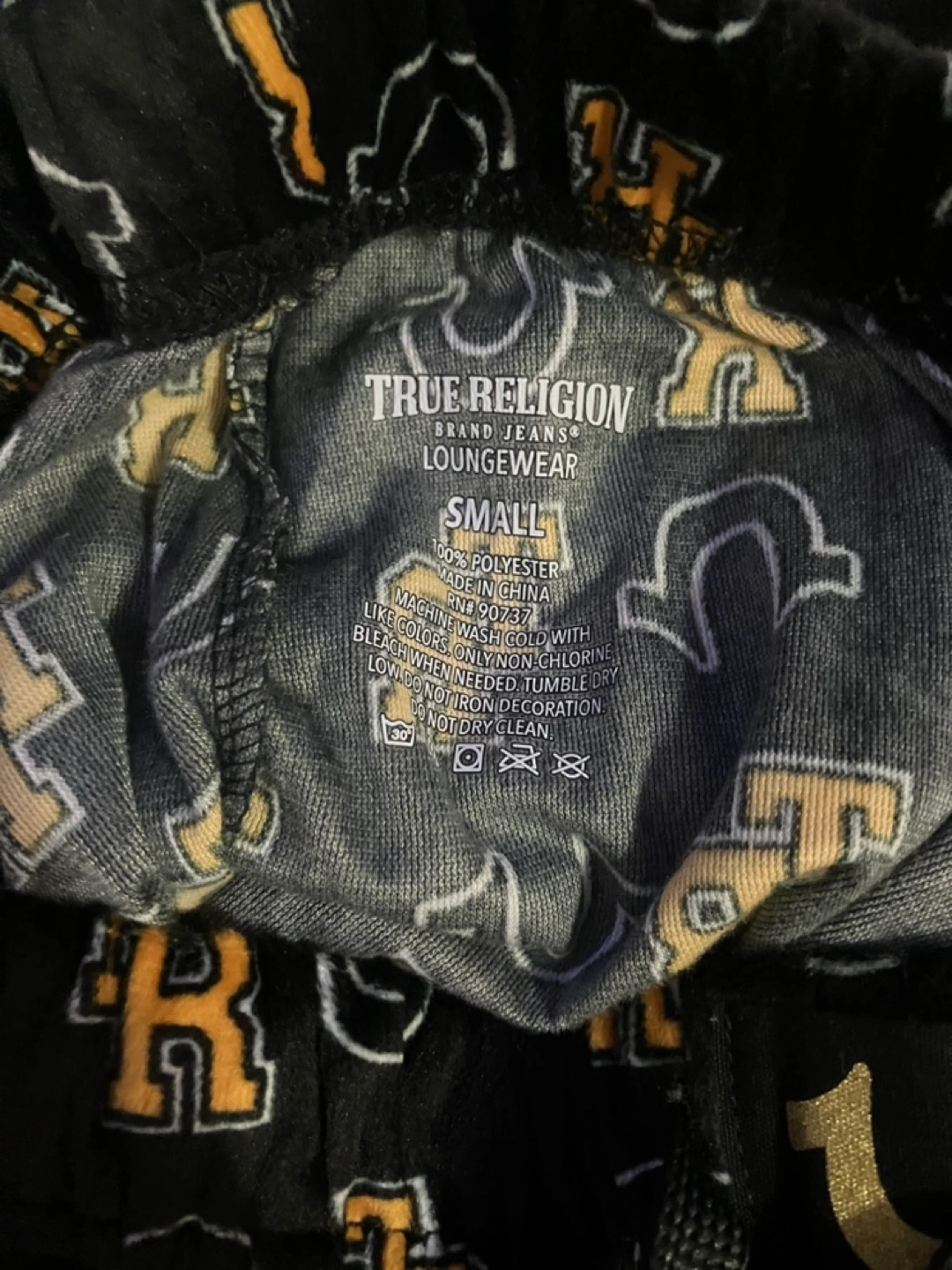True Religion Lounge Shorts. Small size. Black with gold logo print.