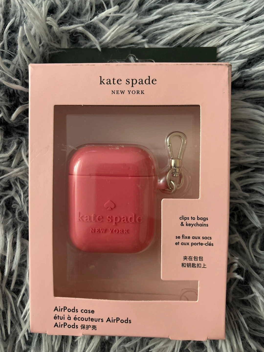 396Brand new Kate Spade AirPods case. Dusty rose colour. Clips to bags and keychains. Protective silicone case.