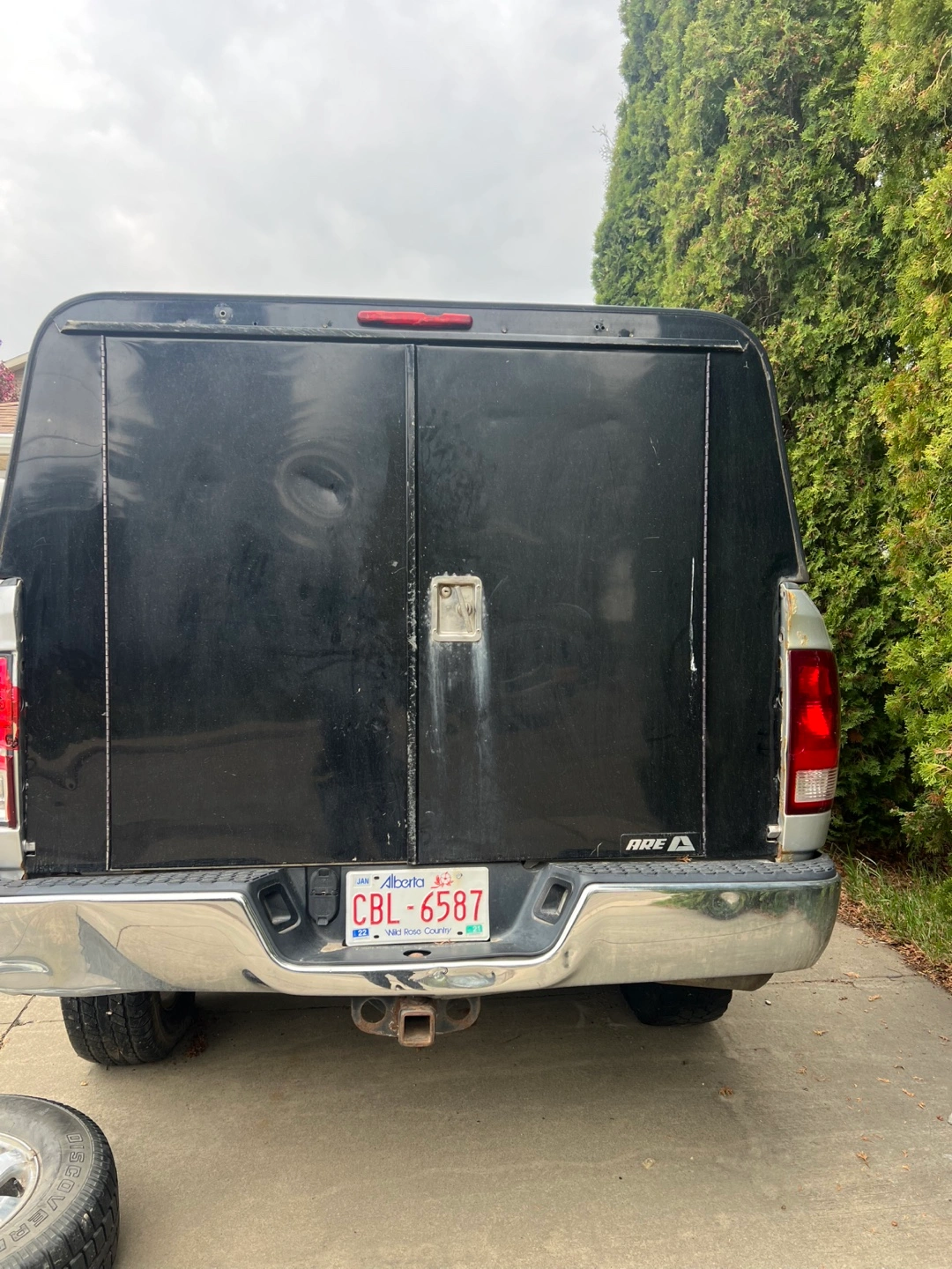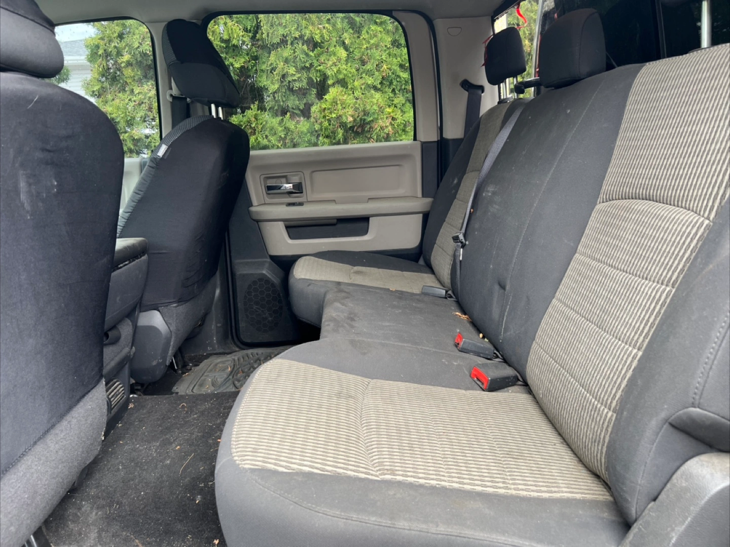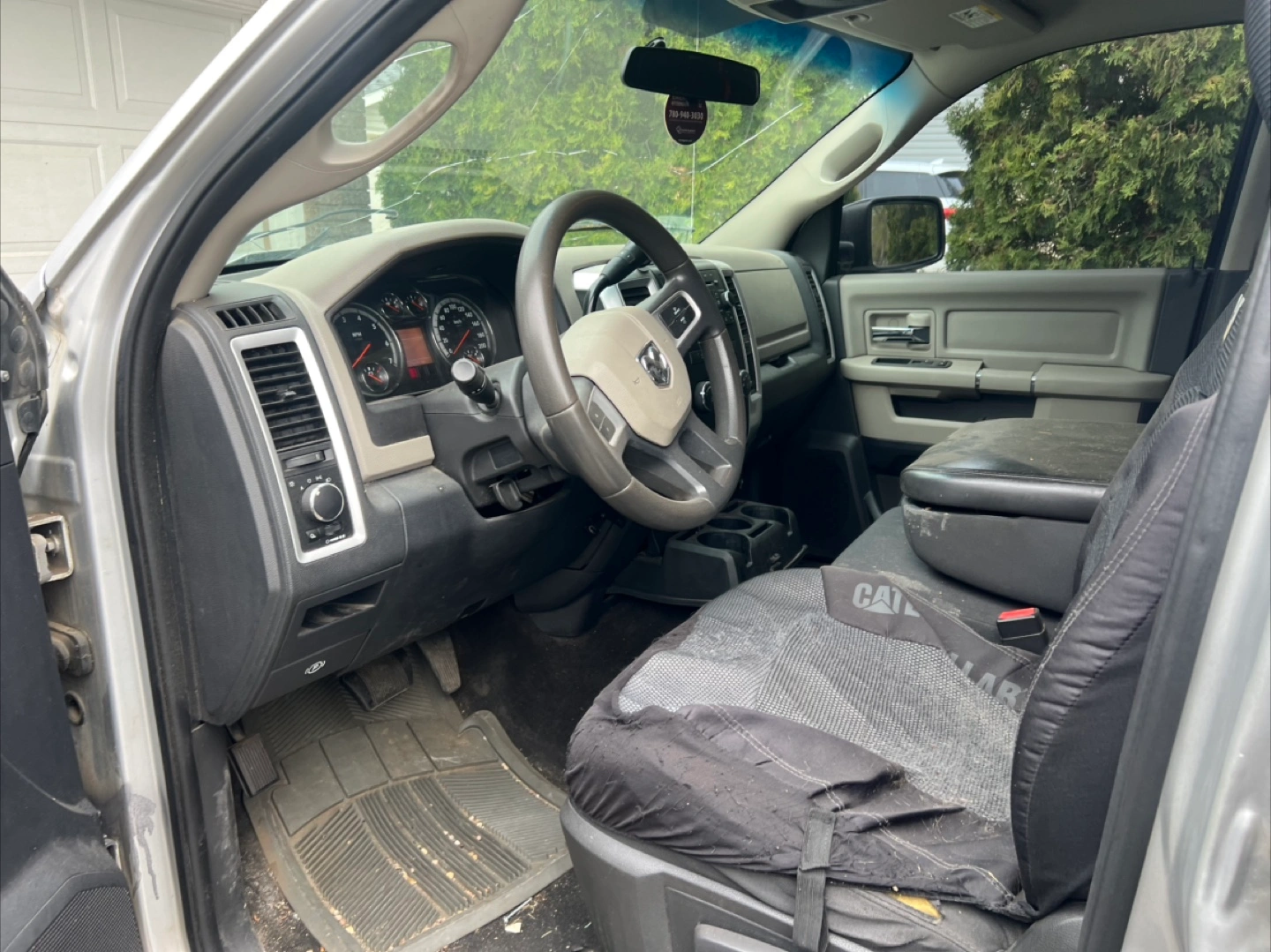 Silver Ram 1500 quad cab pickup truck. Features a black service body. Four doors. Needs some TLC. Sold as is.